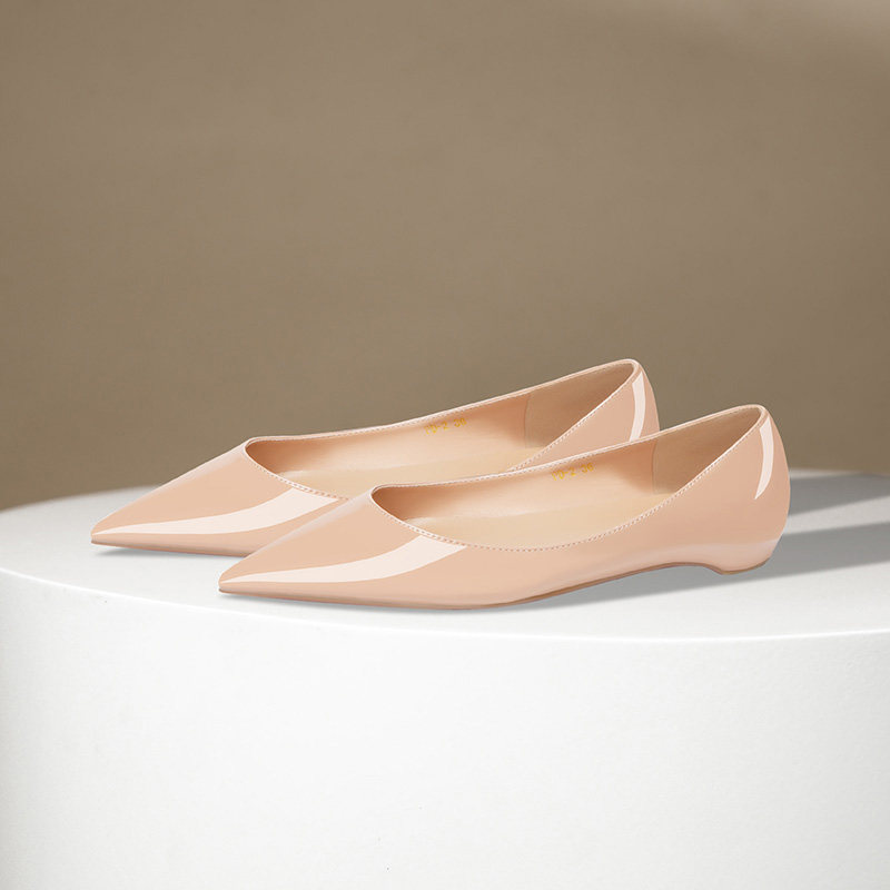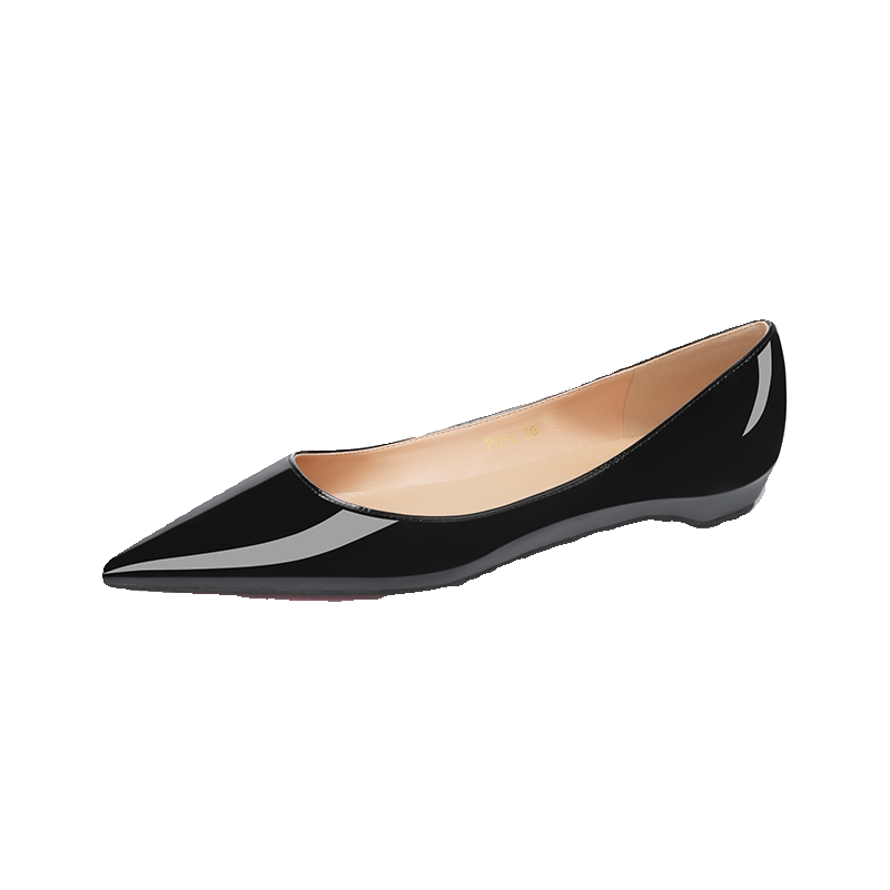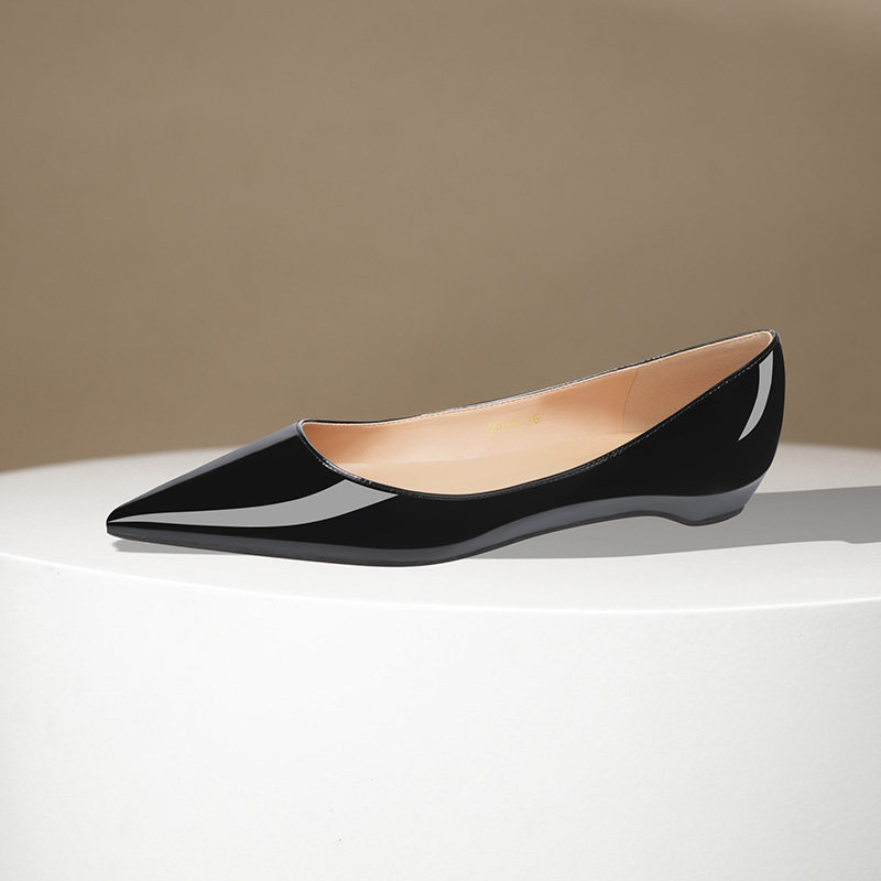 黑色漆皮尖头平底鞋2025春夏新款时尚性感红底内增高百搭浅口单鞋