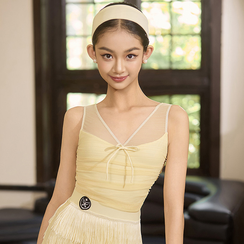星木漾拉丁舞服训练「柔雾丝光」网纱蛋糕流苏裙摆拉丁舞练习套装