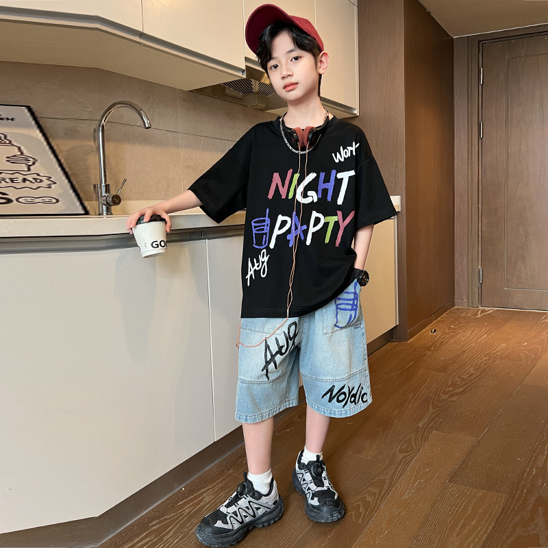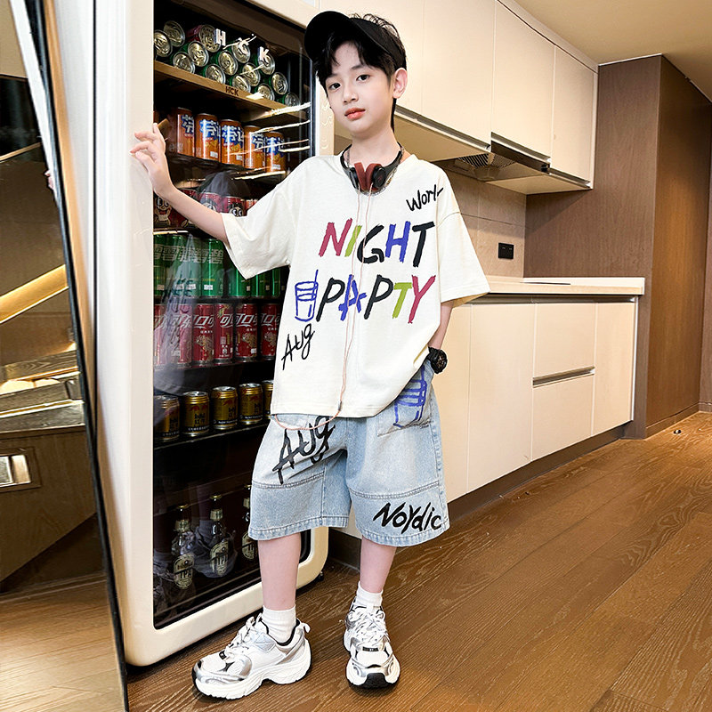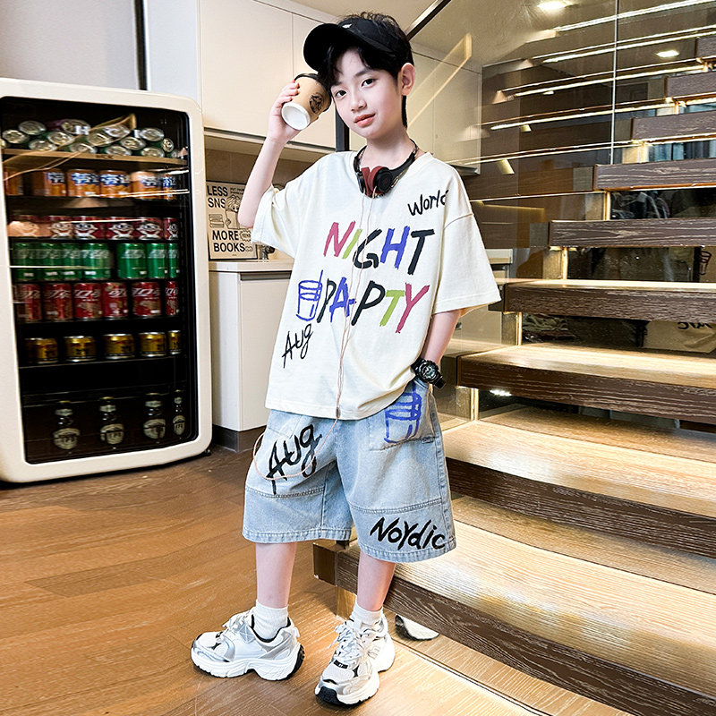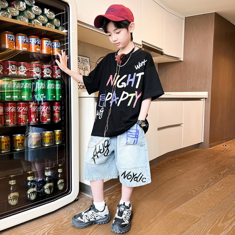 男童夏装套装2026新款夏季短袖牛仔中大儿童男孩薄款痞帅气时髦潮
