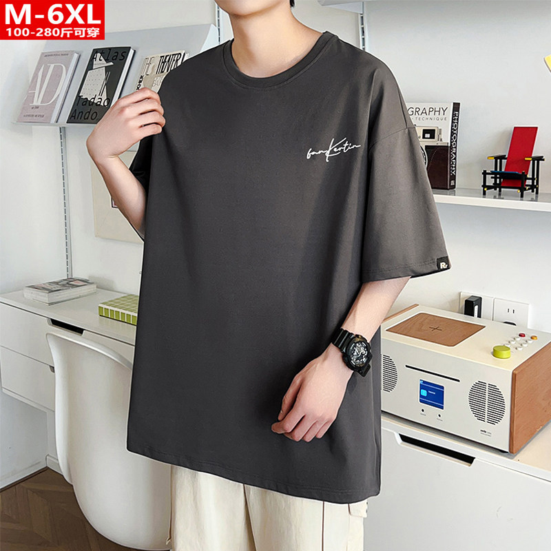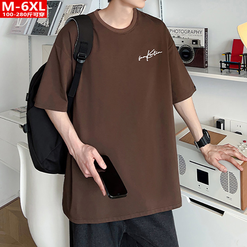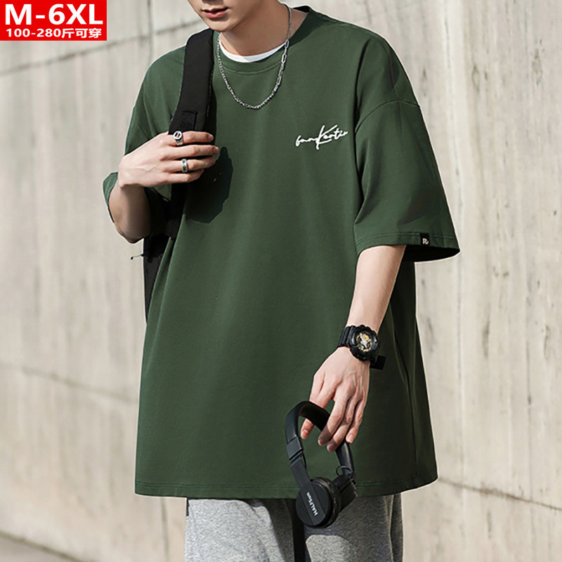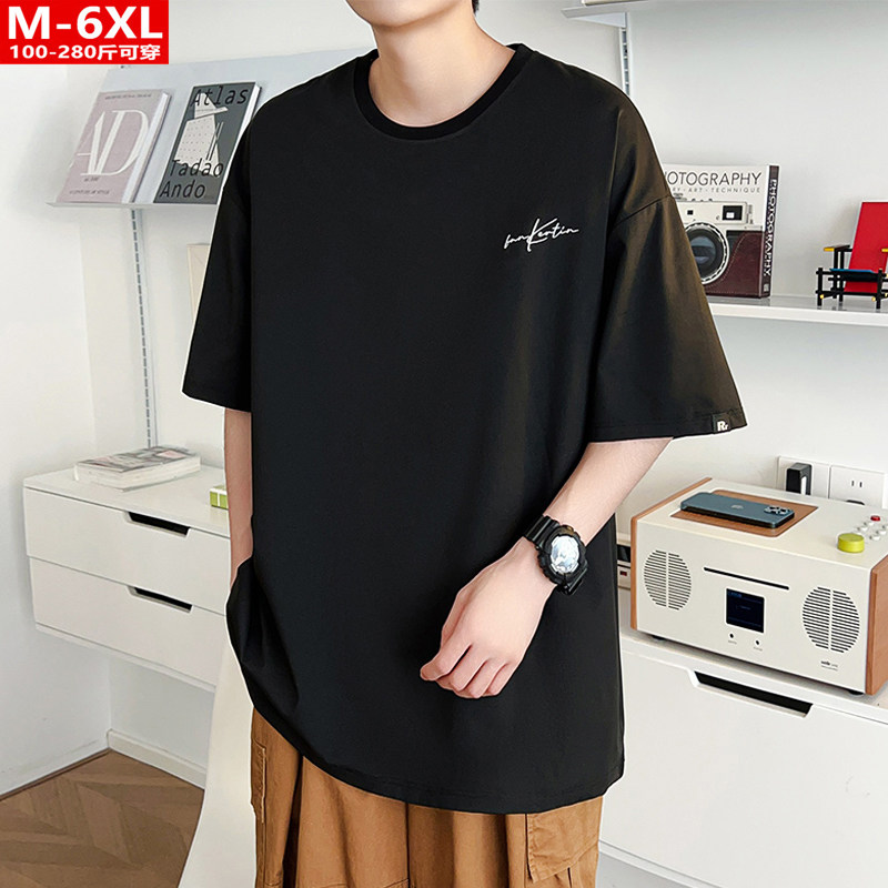 短袖t恤男夏季新款圆领青少年本命年红色大码宽松胖子加肥加大6xl