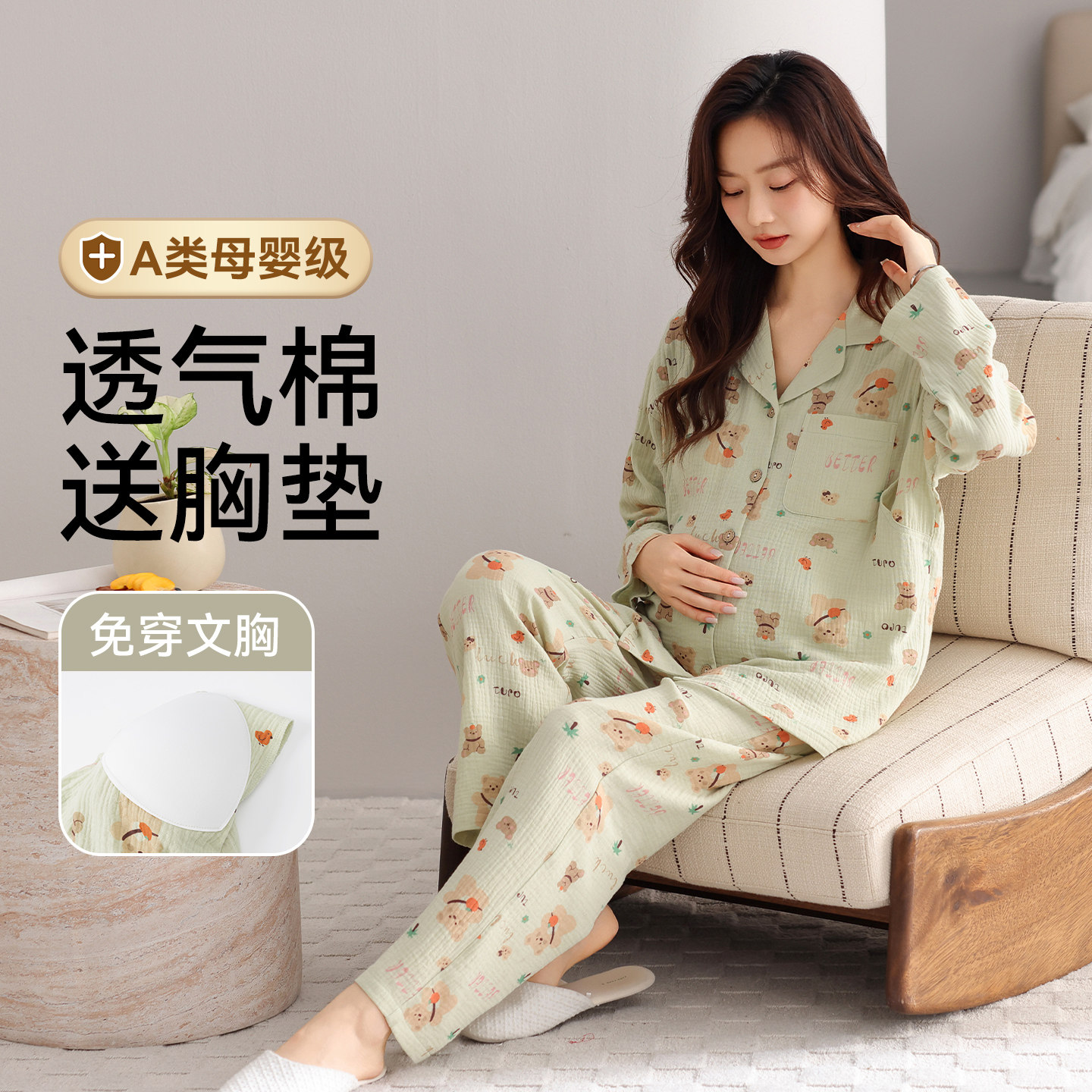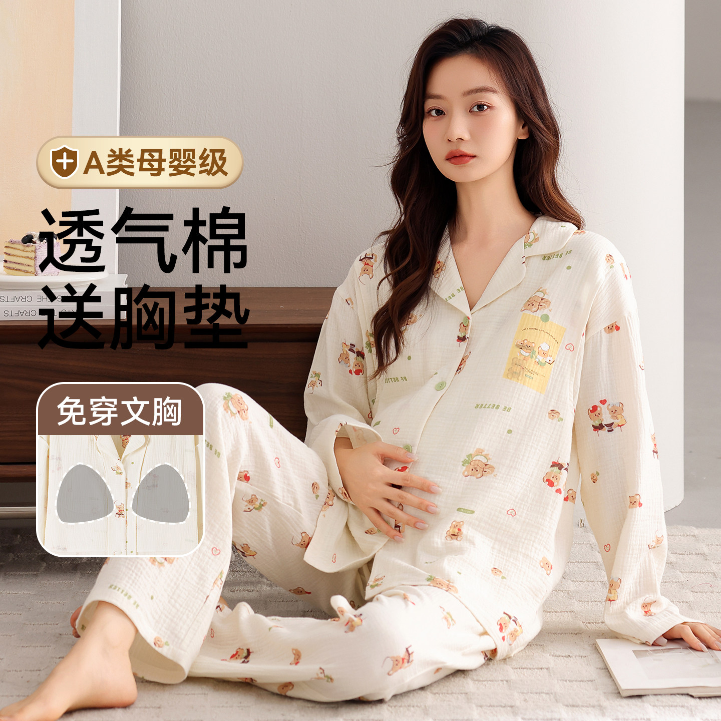 月子服孕妇纯棉纱布睡衣女款2026新款冬高级感春秋季带胸垫家居服