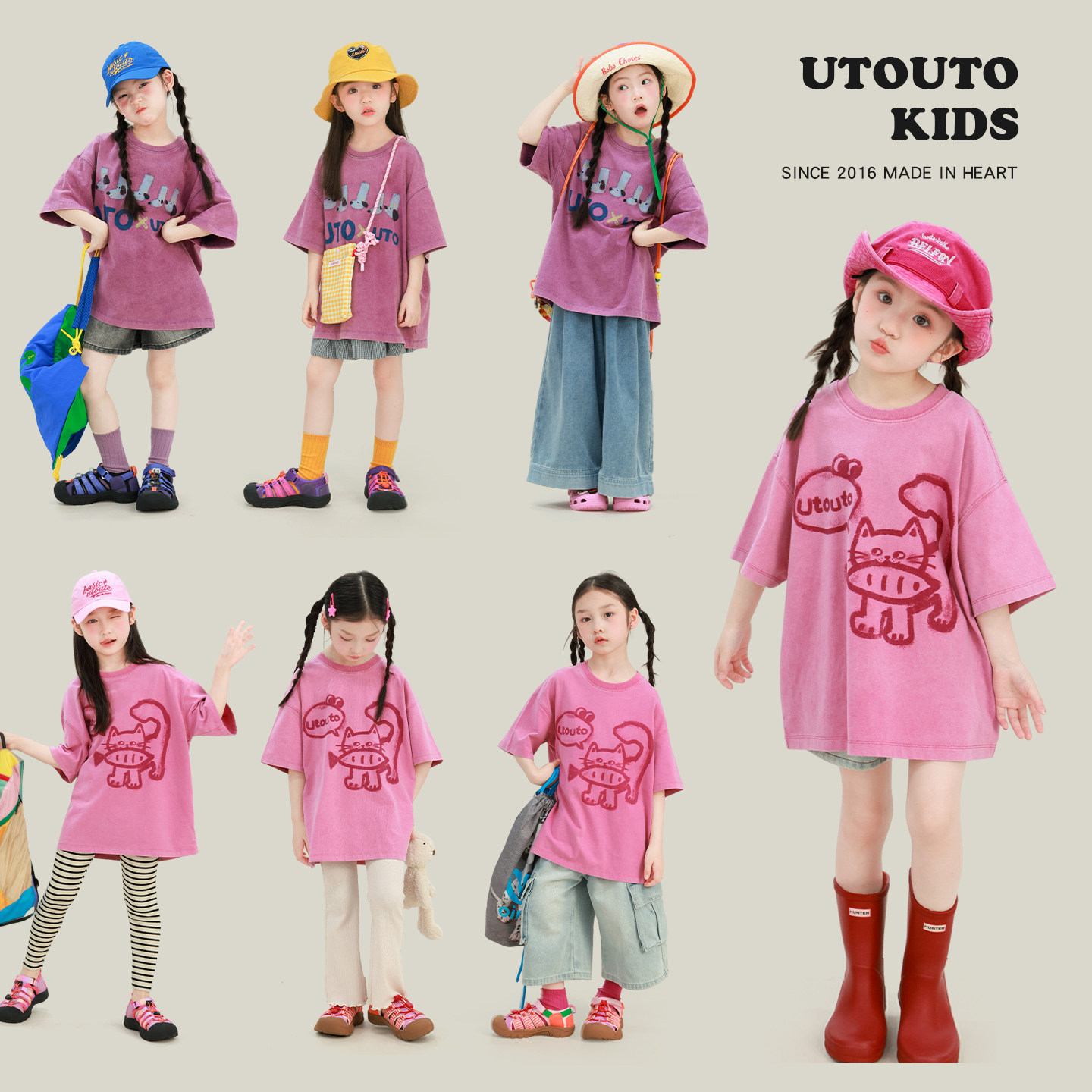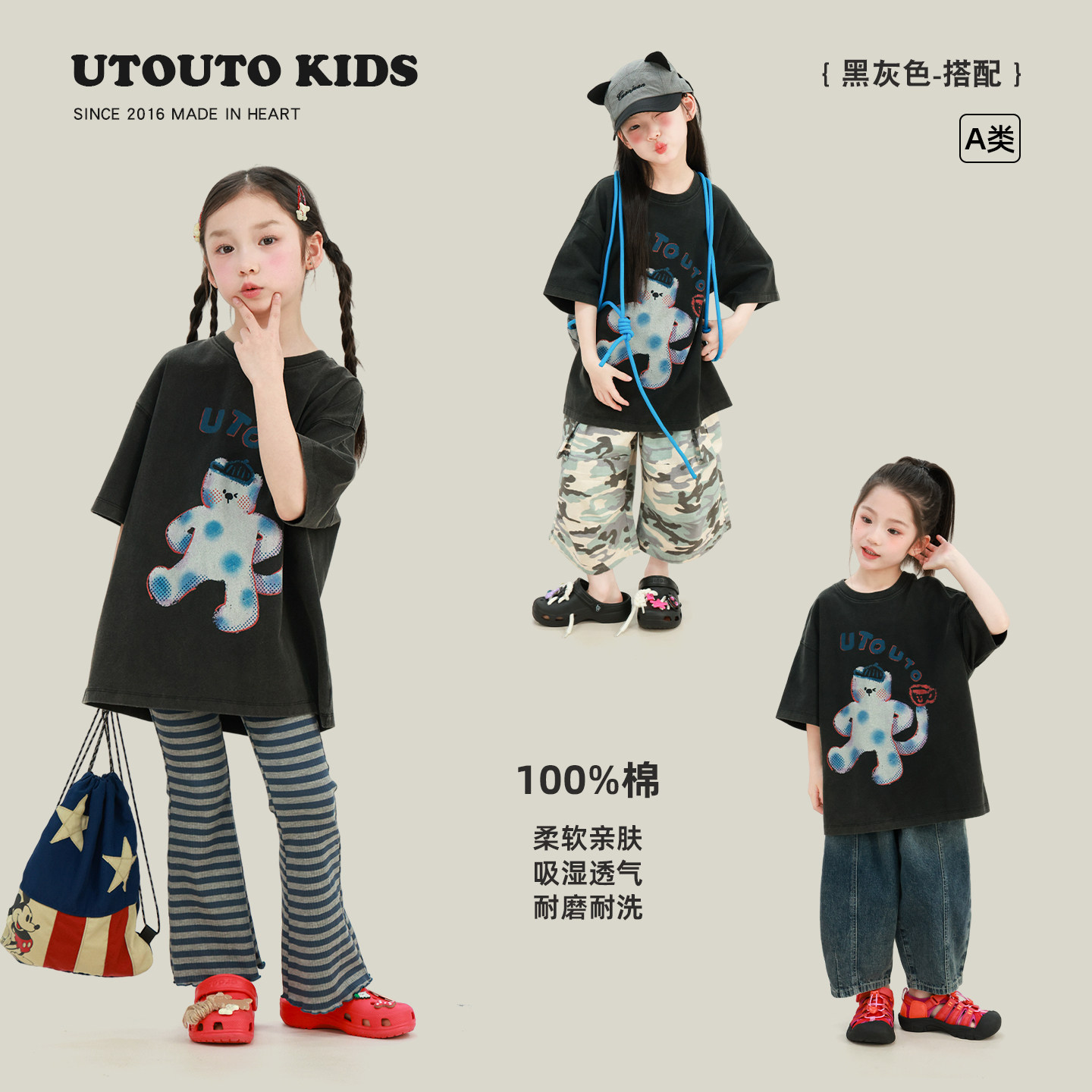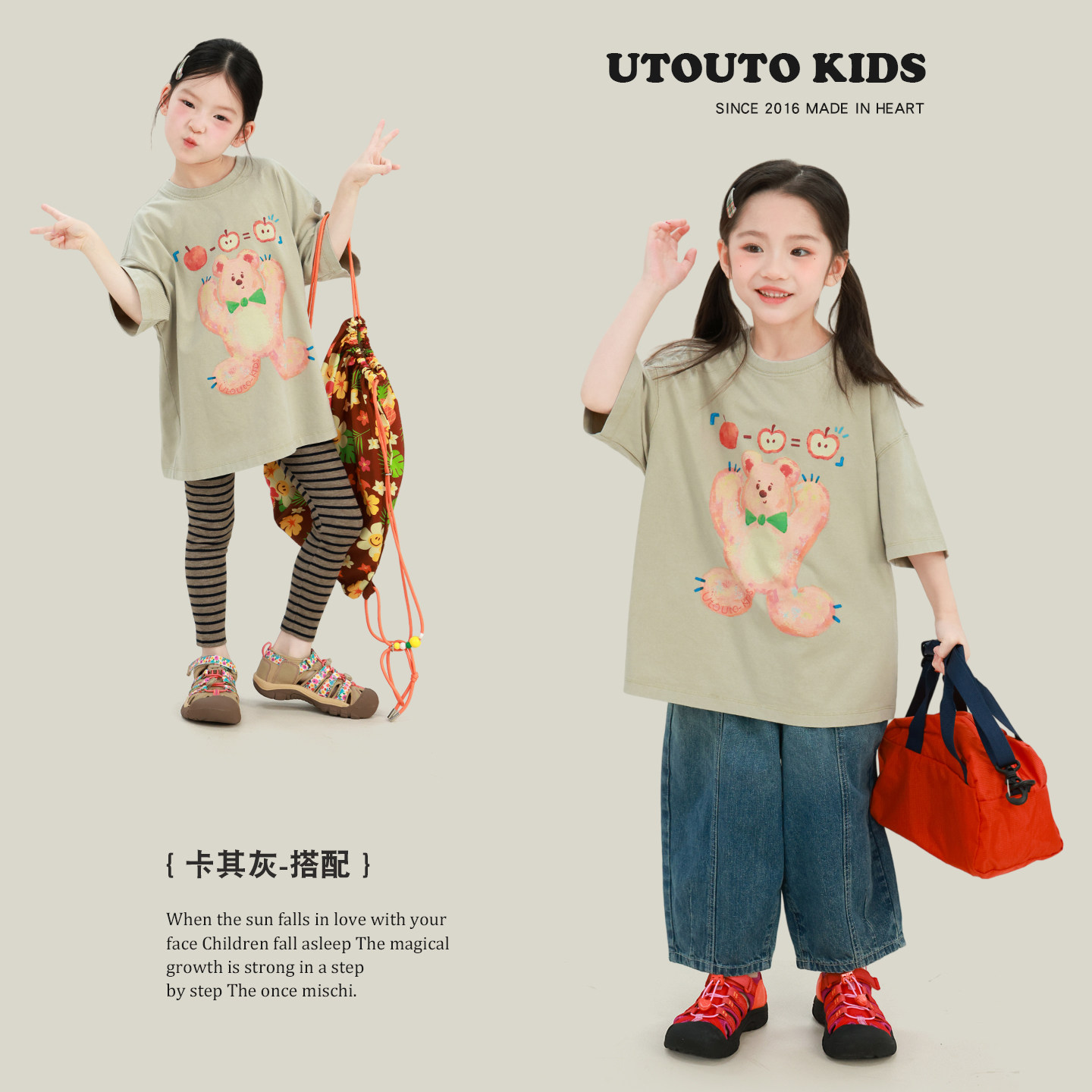 大耳象女童纯棉印花T恤2026夏季新款宝儿卡通休闲百搭薄短袖上衣