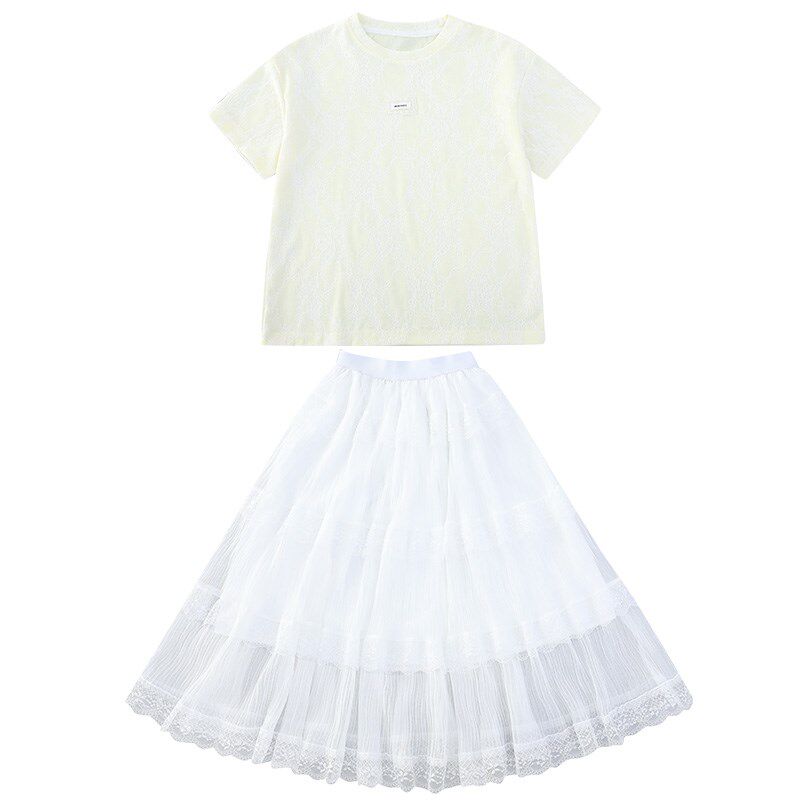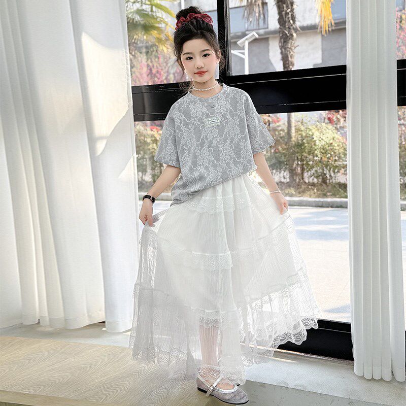 女童套装夏季2025新款轻奢高级感女孩裙子儿童短袖T恤长裙两件套