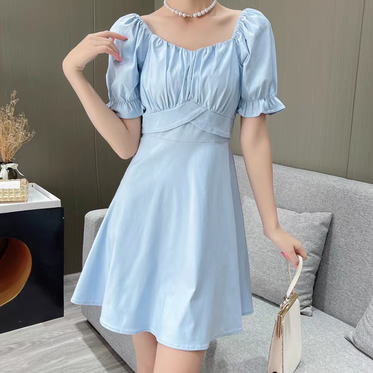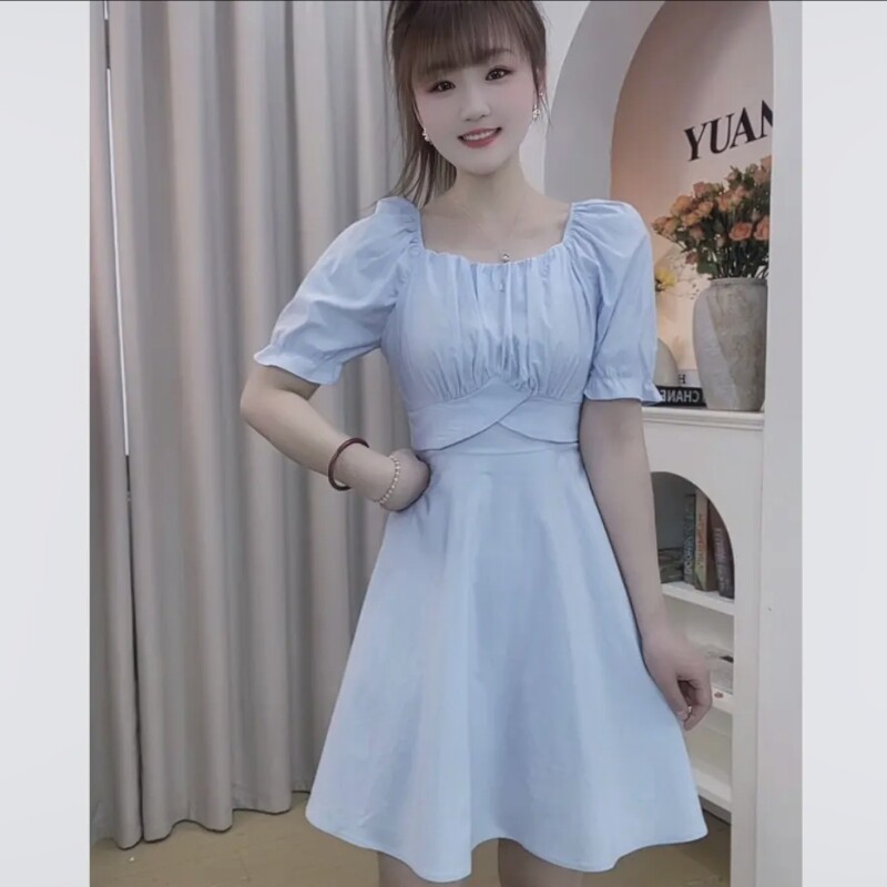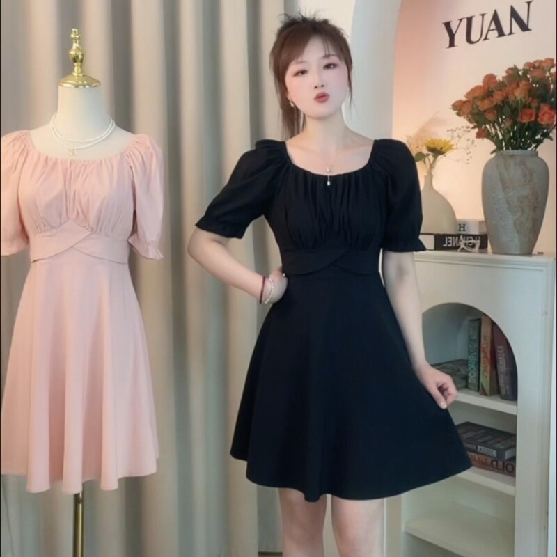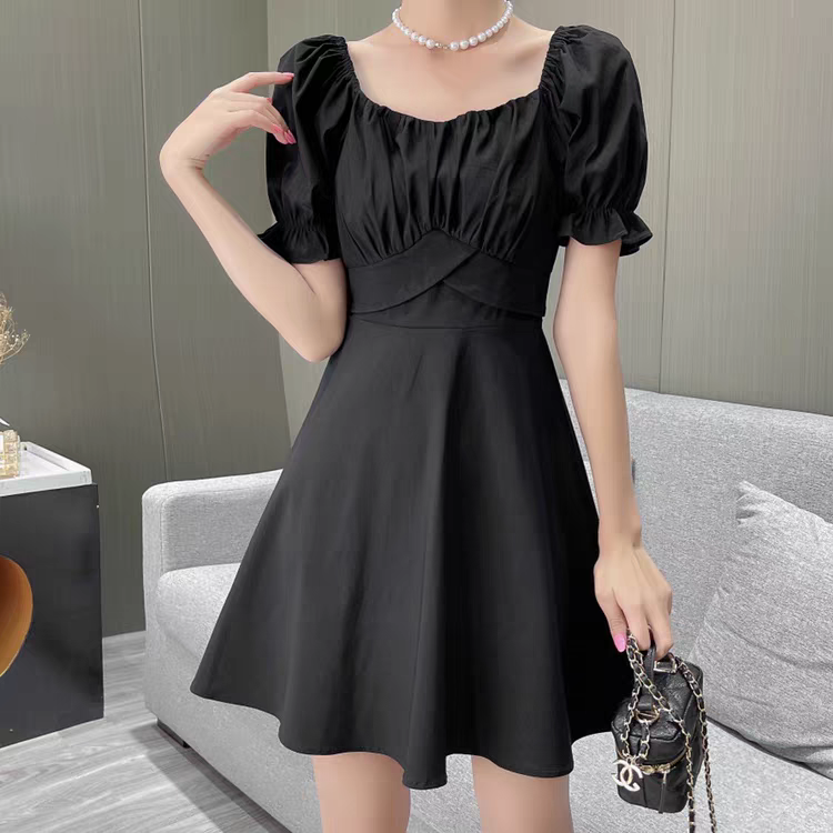 小个子女生专属2026夏季新款气质修身时尚泡泡袖A版长裙连衣裙