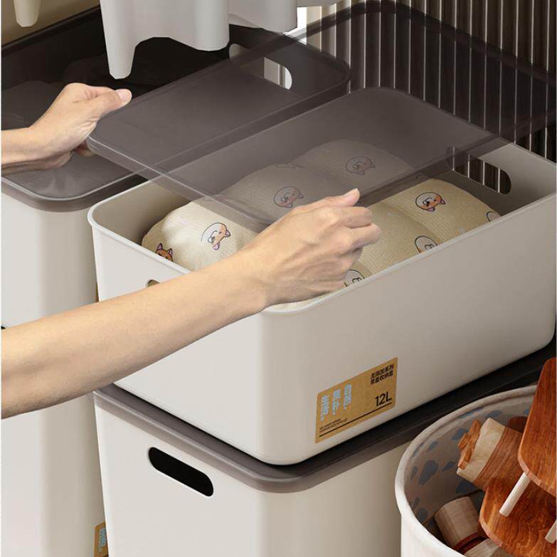 日本风简约桌面收纳盒家用厨房带盖小号储物盒学生宿舍书本杂物箱