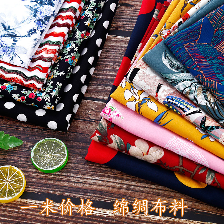 棉绸绵绸面料卡通女士民族人造棉布料服装睡衣面料夏凉被布料