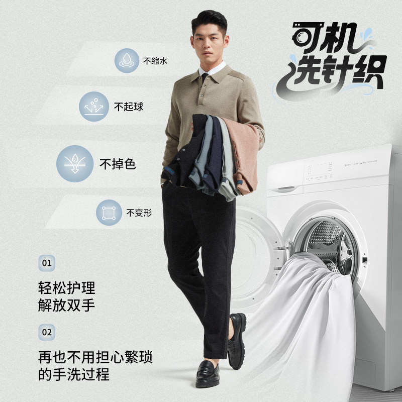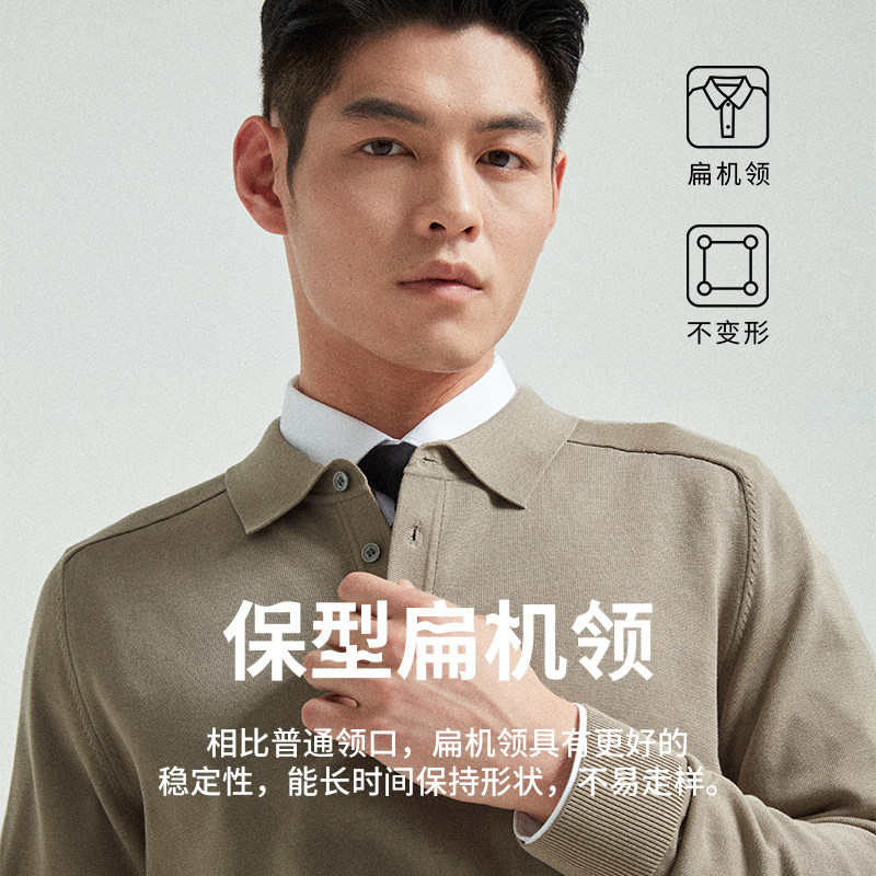 杉杉可机洗针织衫Polo衫男款2026春秋新款长袖t恤男翻领上衣男