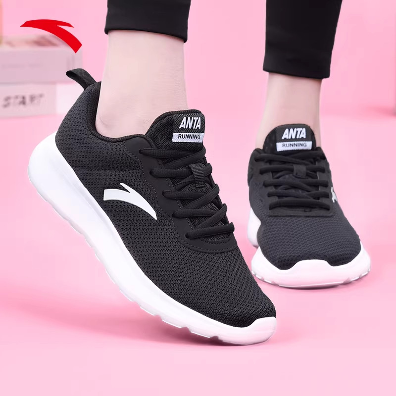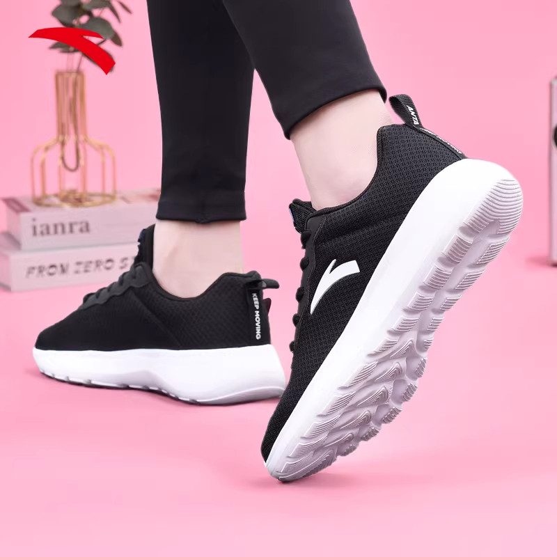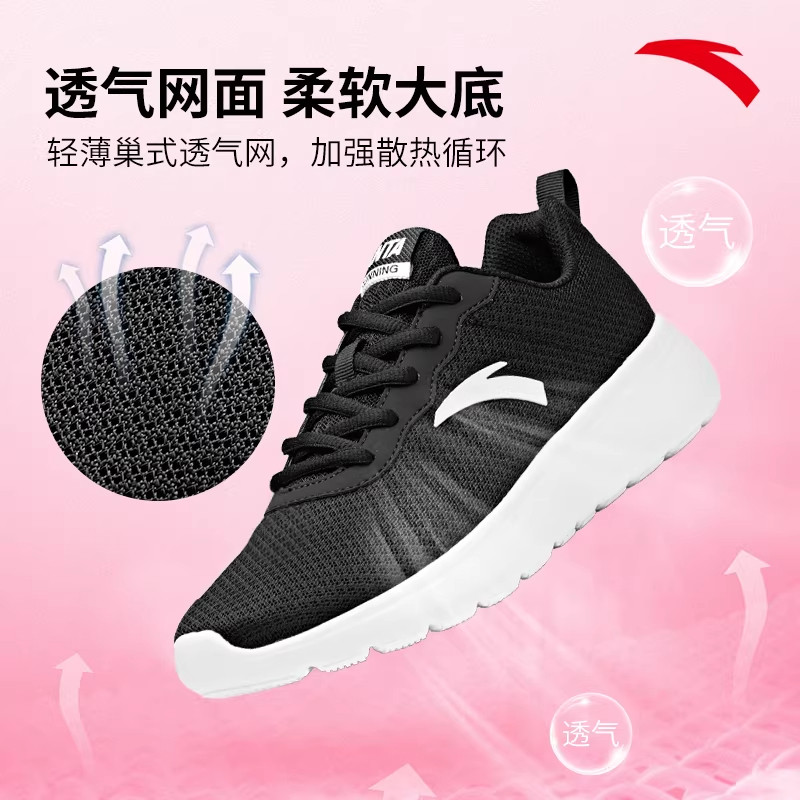 安踏女鞋透气跑步鞋网面2026新款官方旗舰正品轻便软底黑色运动鞋