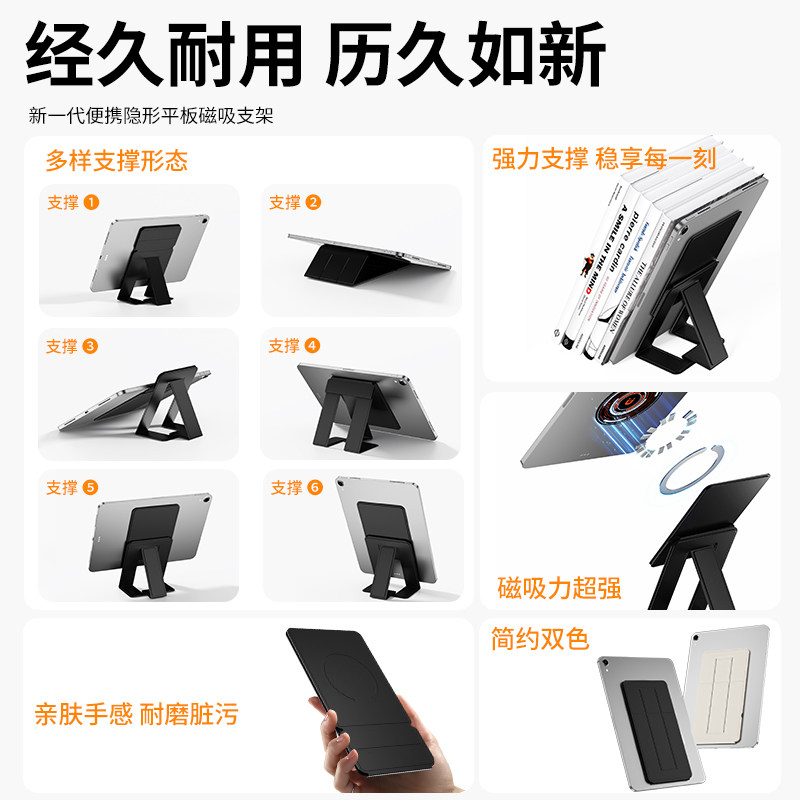 竞闪新款磁吸平板iPad便携折叠支架air7/6磁吸720°旋转ipad11增高支点壳轻便加高横竖屏引磁片简约分离安卓