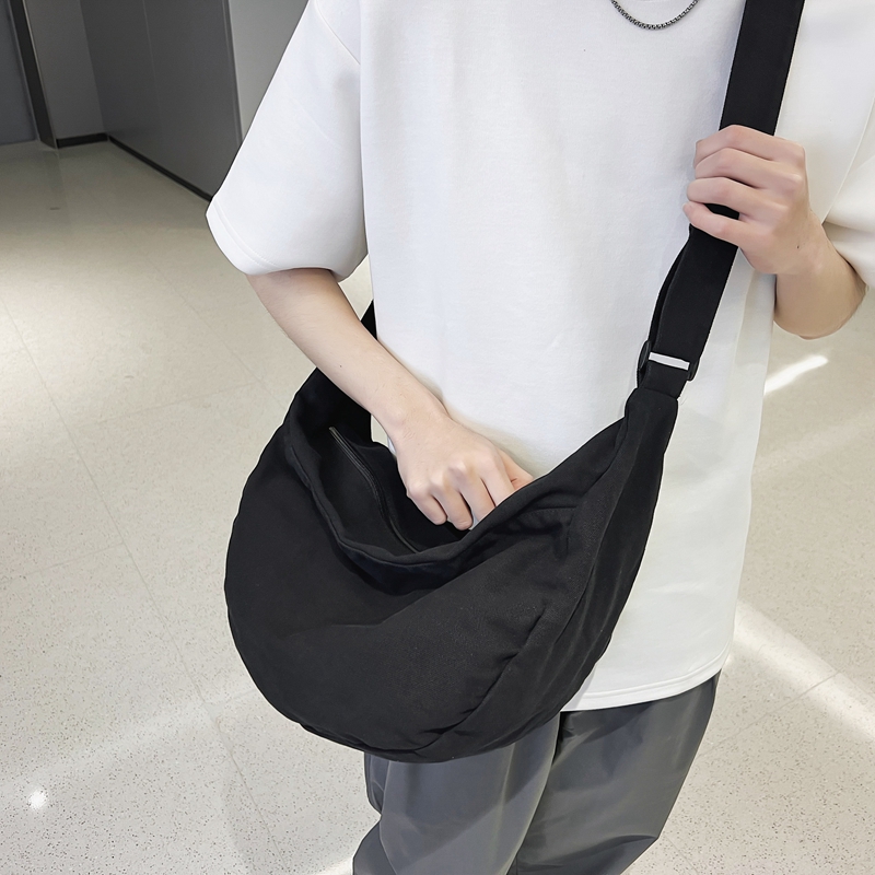 慵懒风水洗帆布包大容量斜挎包男日系复古通勤包女饺子单肩包潮牌