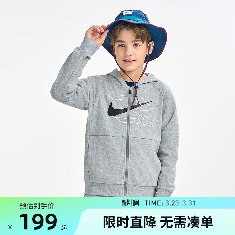 Nike 3brand儿童装男童卫衣开衫2026新款大童运动外套上衣长袖棉