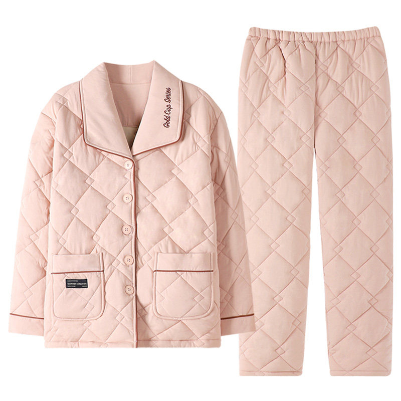 猫人睡衣女秋冬三层加厚纯棉夹棉冬款家居服全棉保暖妈妈套装