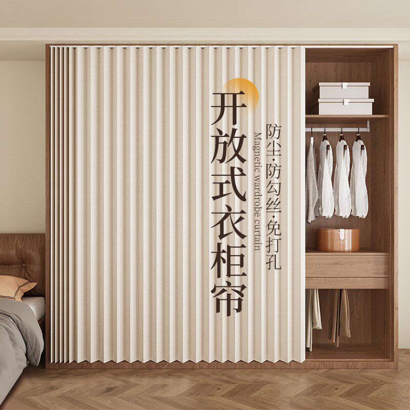 极速柜子遮挡帘免k打孔折叠无门衣柜专用2025新款滑轨置物架防尘
