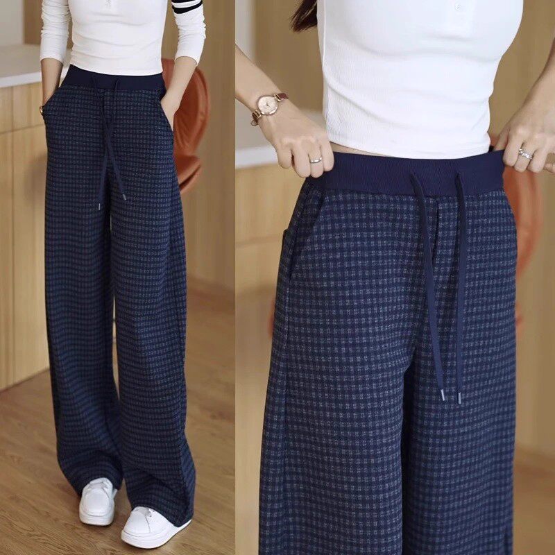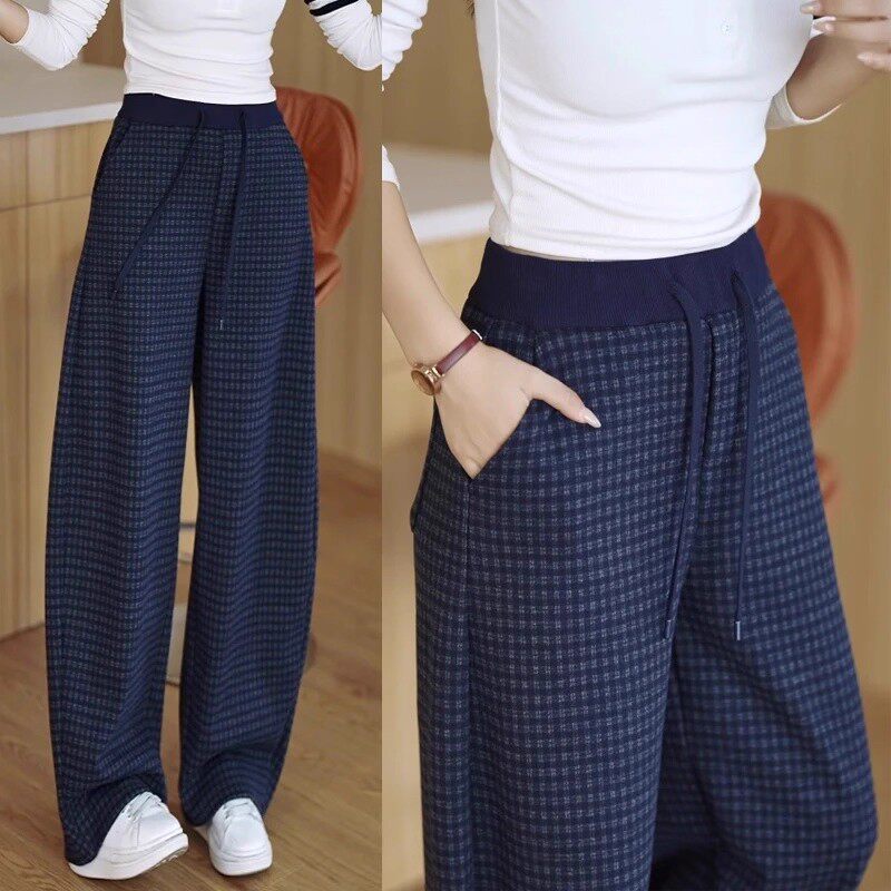格子阔腿裤女秋冬加绒加厚2026新款今年流行爆款休闲直筒弯刀裤子