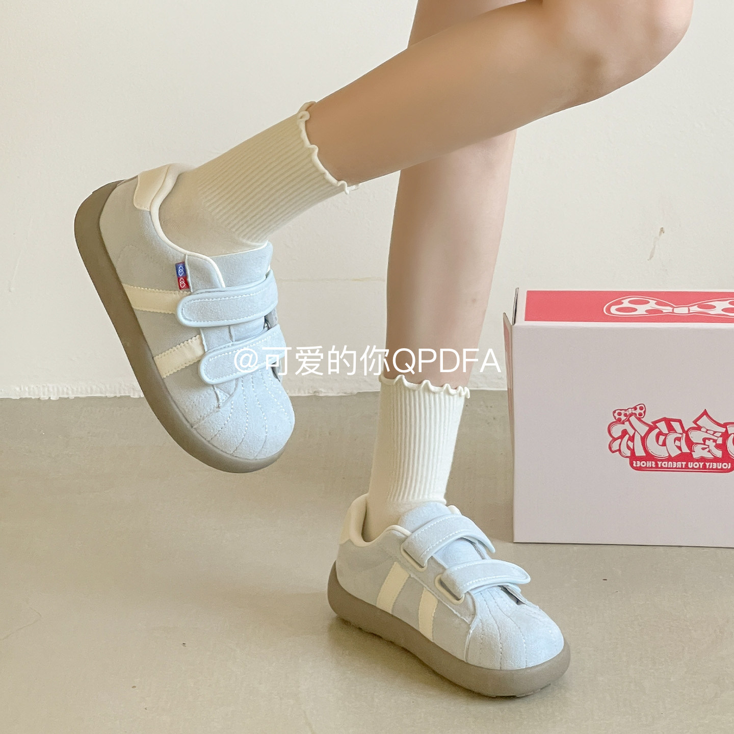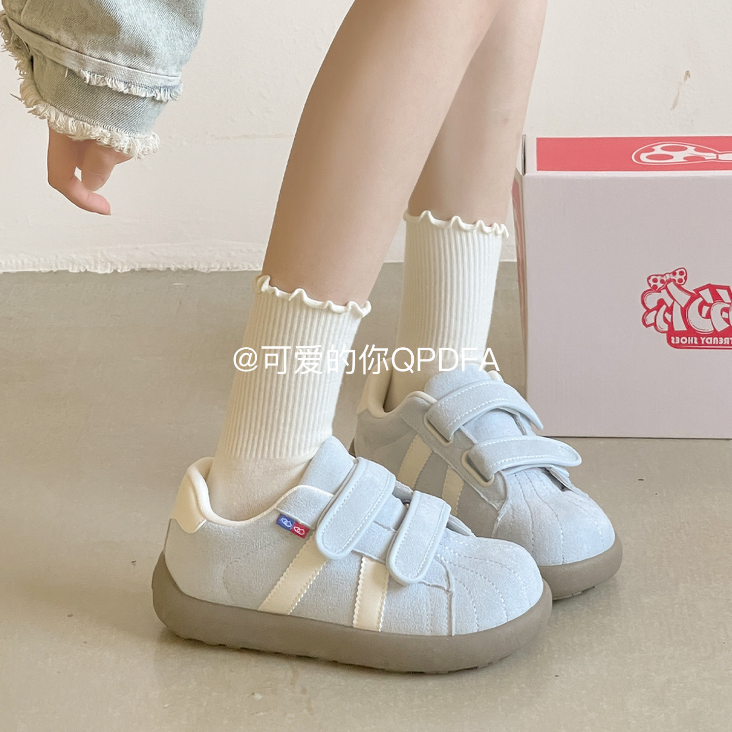 可爱的你魔术贴厚底板鞋女款2026新款春季百搭小白鞋子学生面包鞋