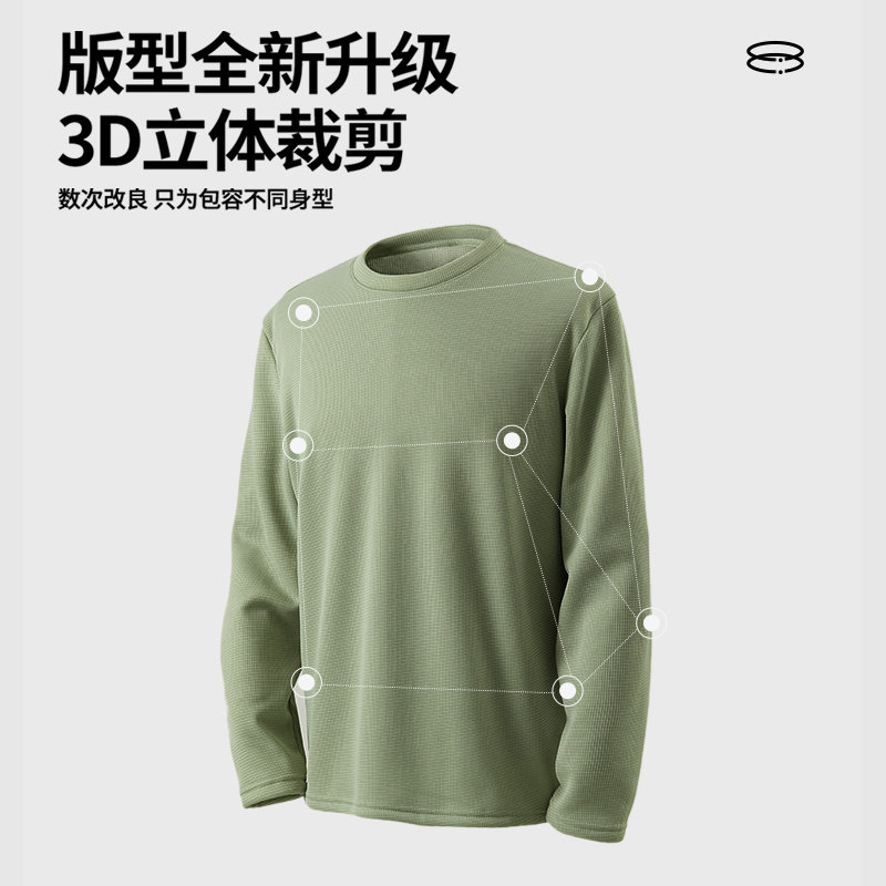 回力青少年重磅长袖t恤男春秋季马里奥华夫格宽松内搭短袖打底衫Y