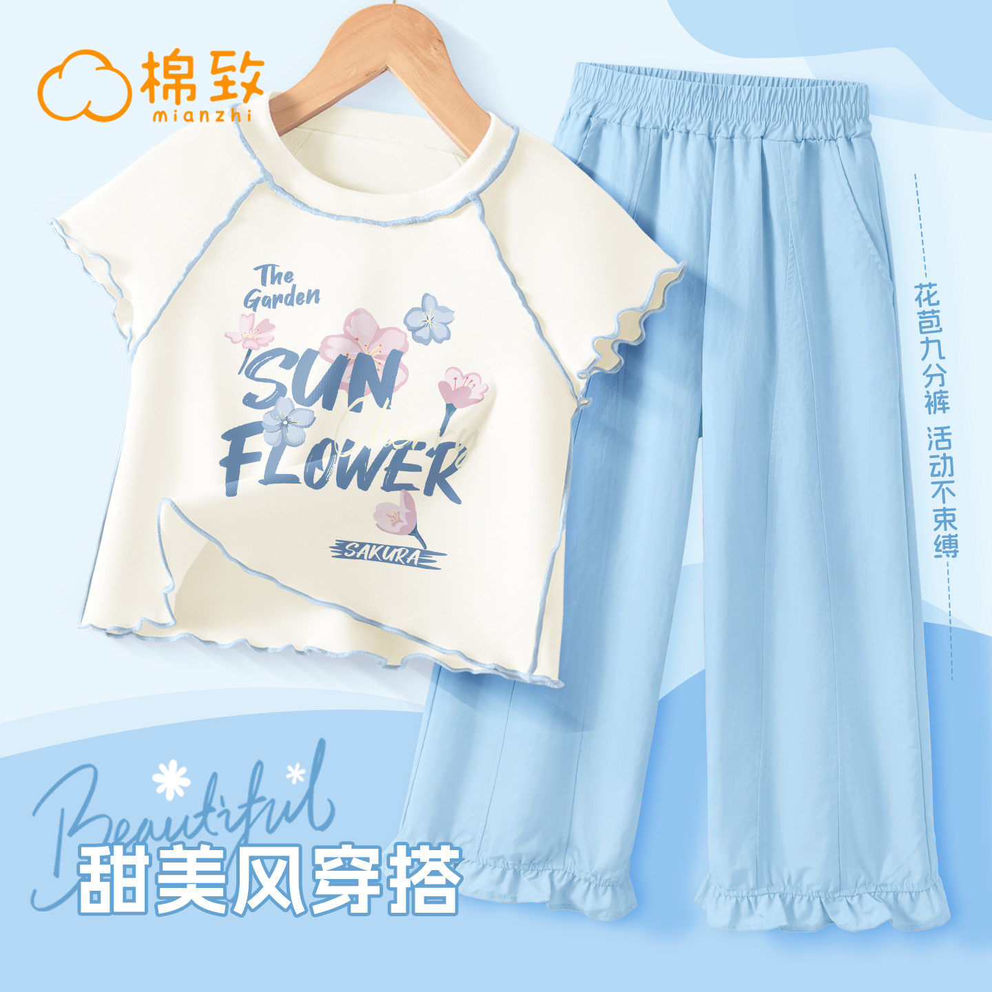 棉致女童套装2026新款夏季时髦漂亮女装女孩夏装短袖薄款儿童裤子