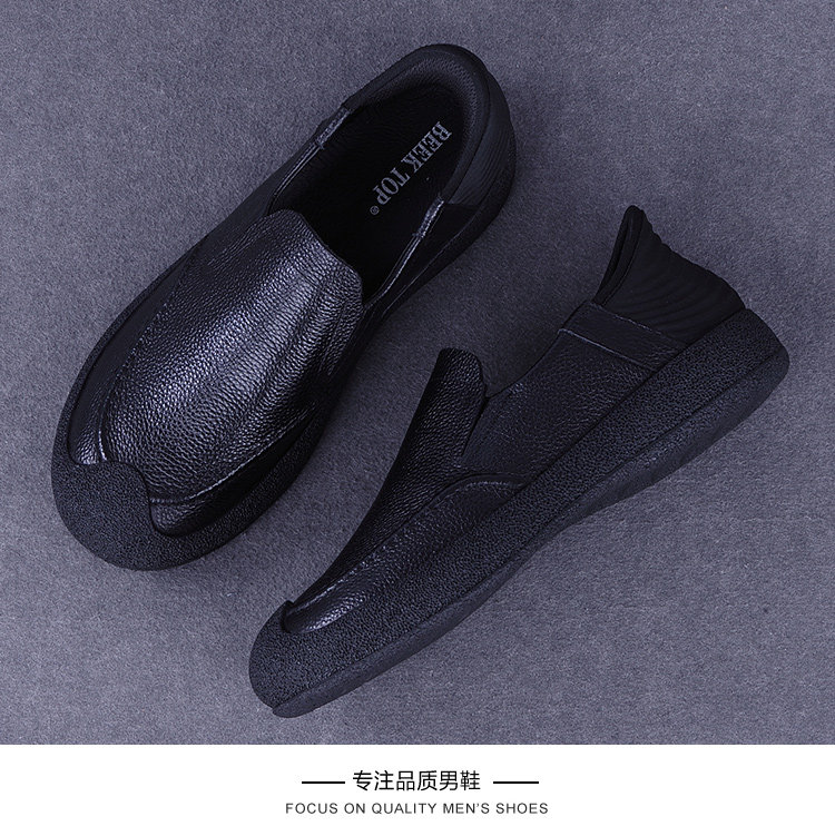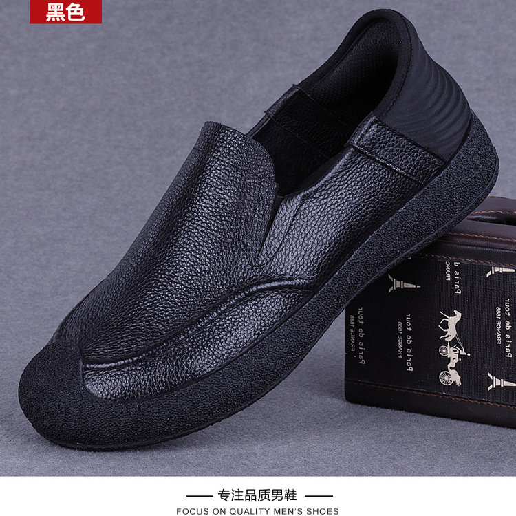 外贸休闲皮鞋男款秋季新款头层牛皮一脚蹬豆豆鞋男士透气软底皮鞋