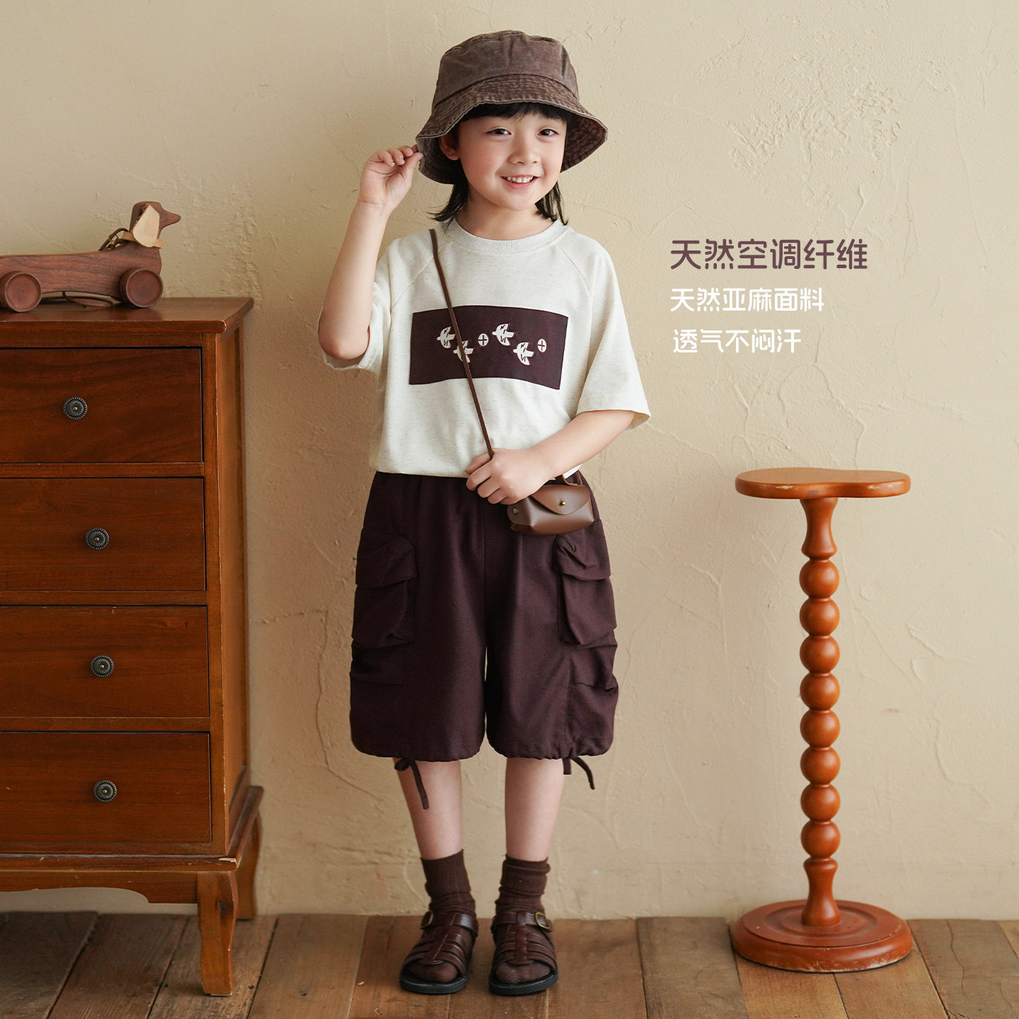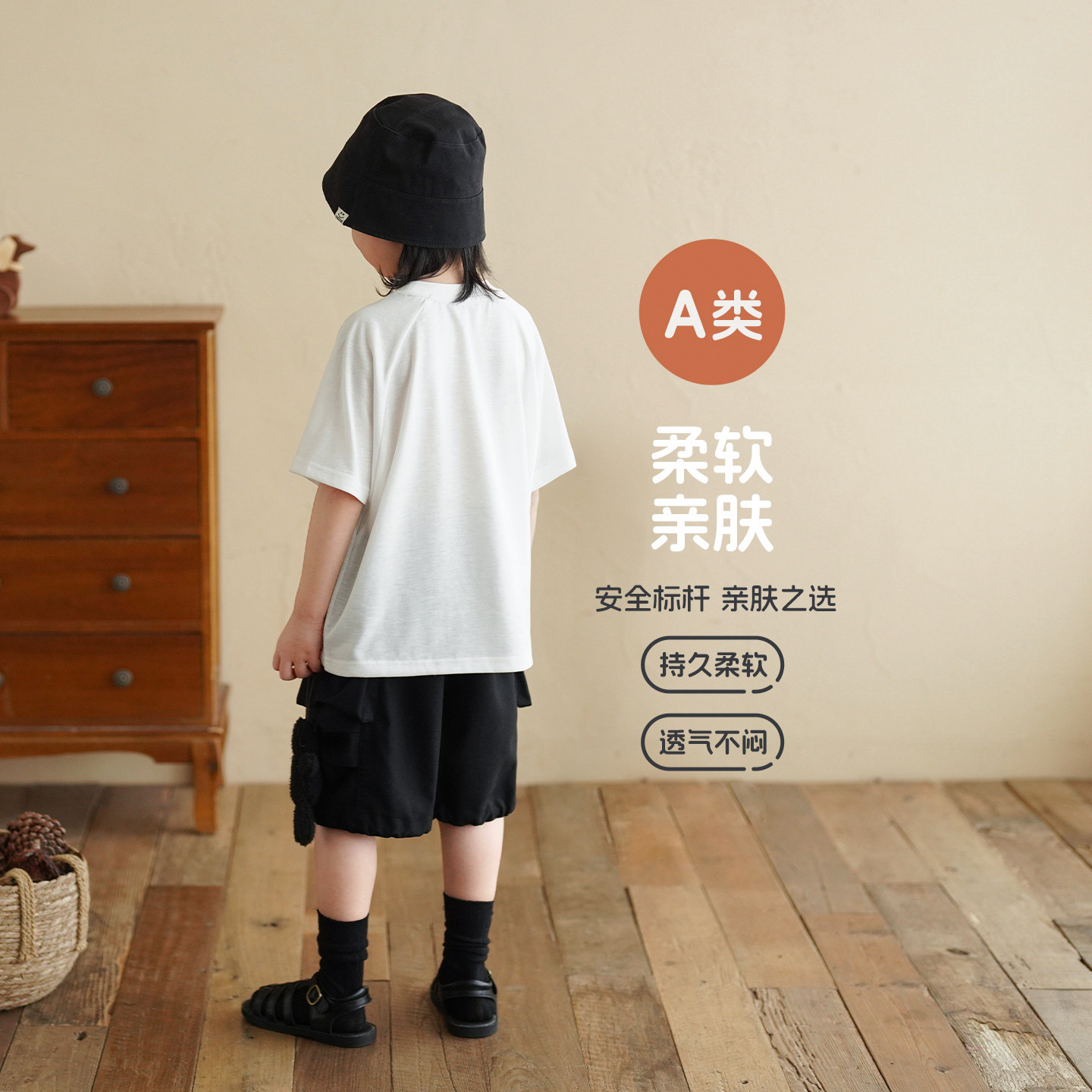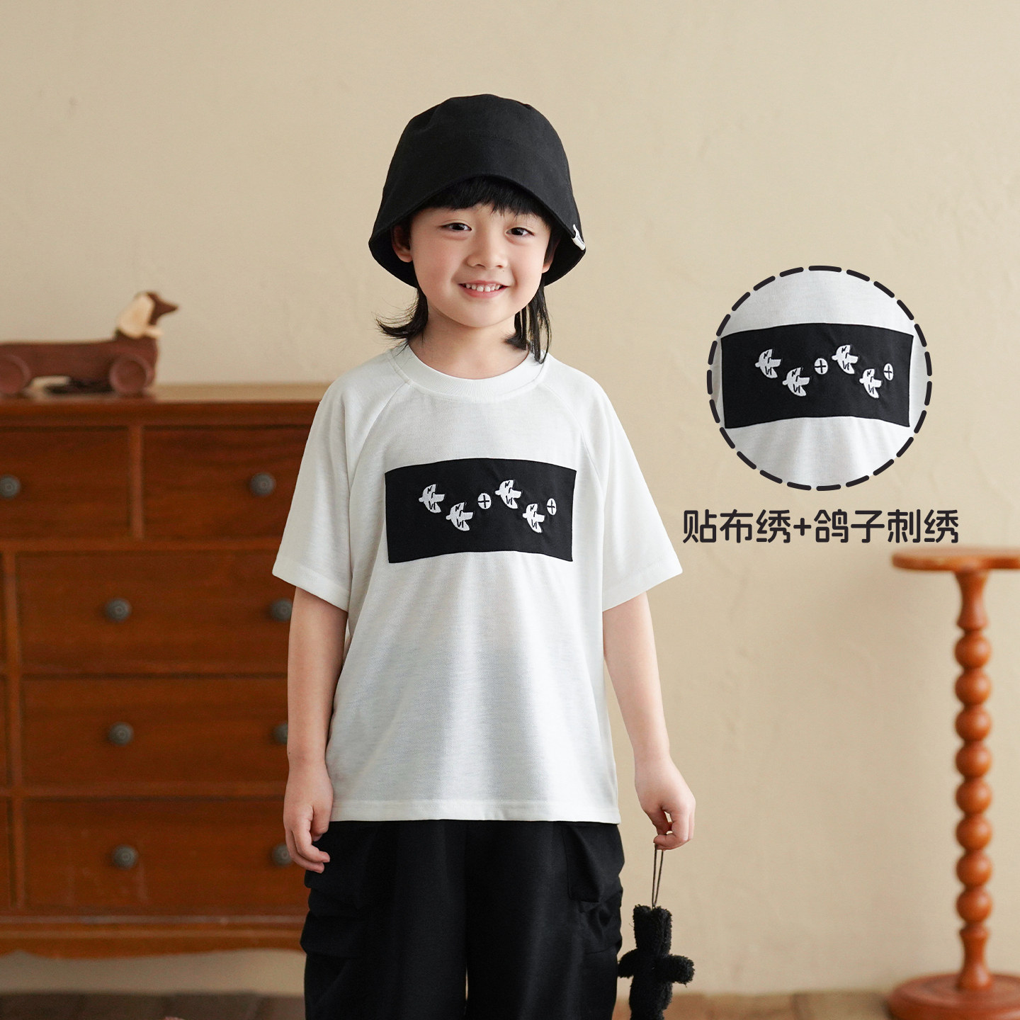 砚台家儿童A类纯棉白色T恤2026夏季新款童装宝宝米色上衣男童短袖