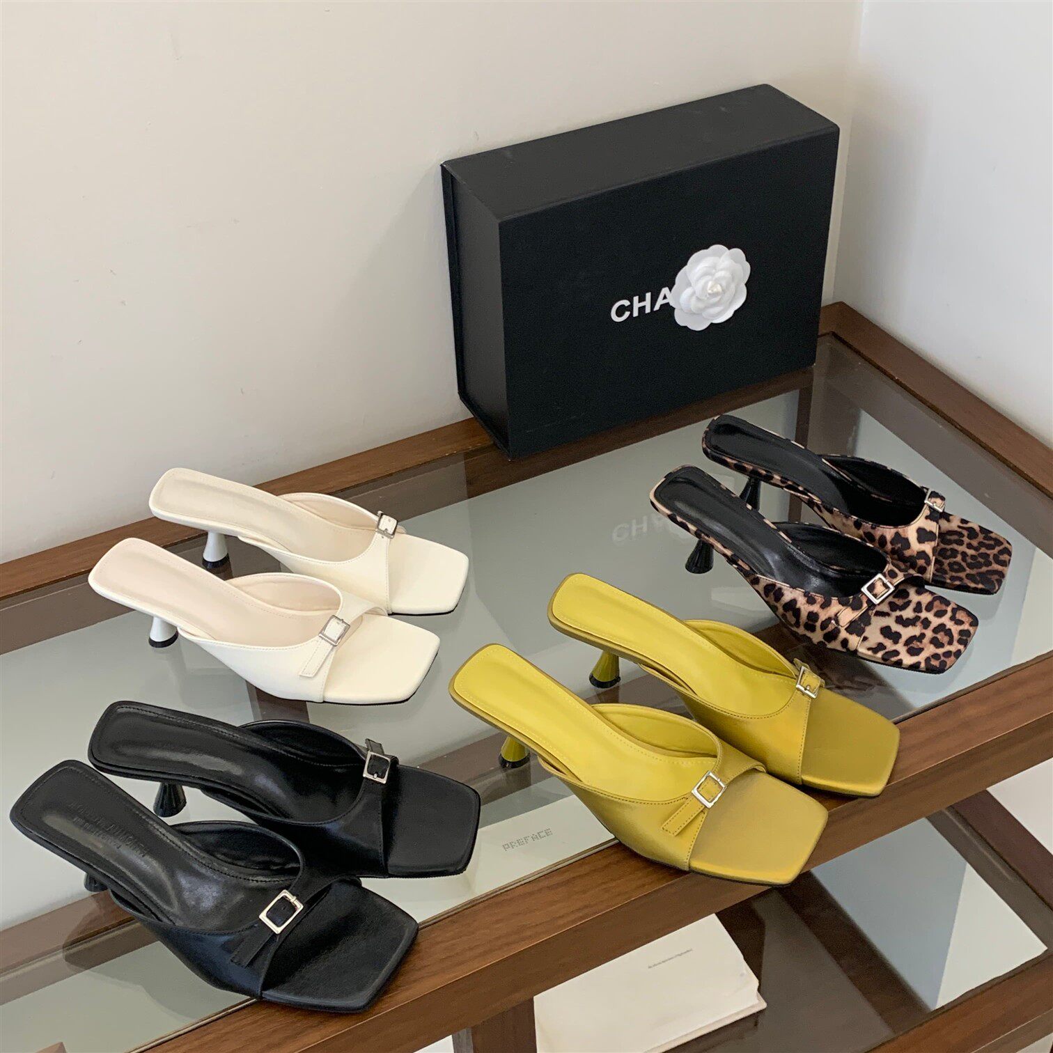 高级感细跟穆勒鞋女外穿夏季皮带扣带方头凉拖鞋配裙子鞋真皮凉鞋