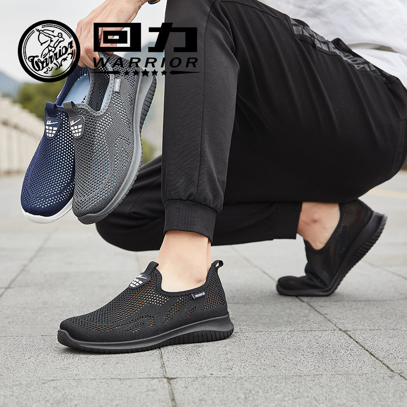 回力网鞋男夏季透气薄款男鞋一脚蹬老北京布鞋男镂空网面运动鞋男