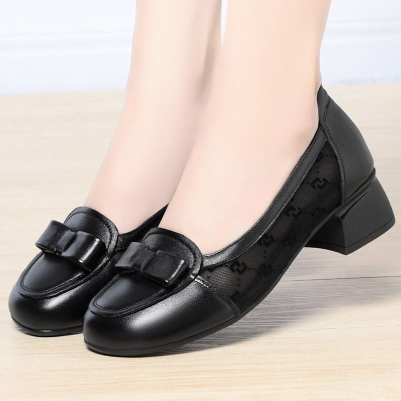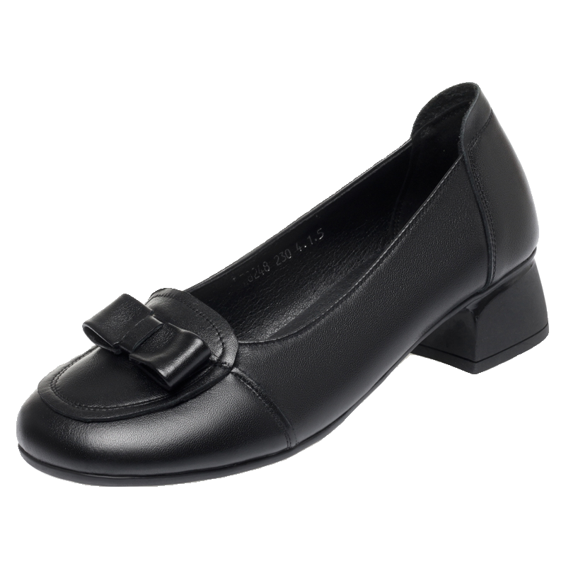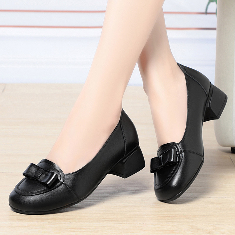 真皮软底妈妈鞋春秋单鞋中跟软皮中年女式皮鞋粗跟不累脚大码女鞋
