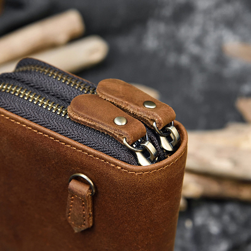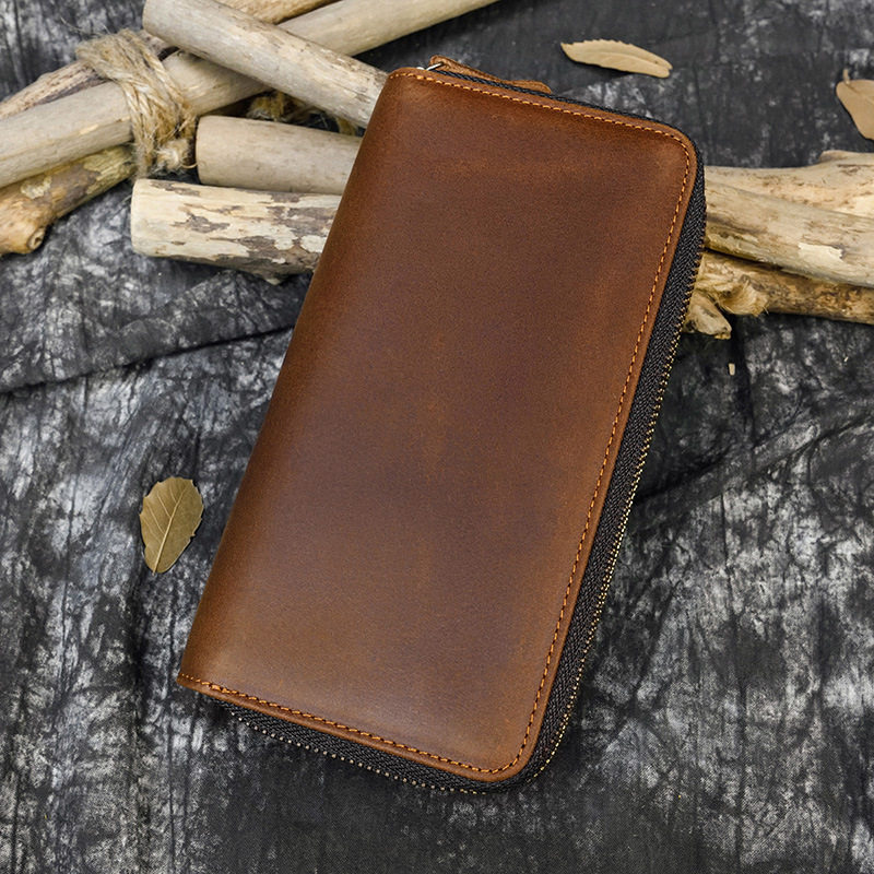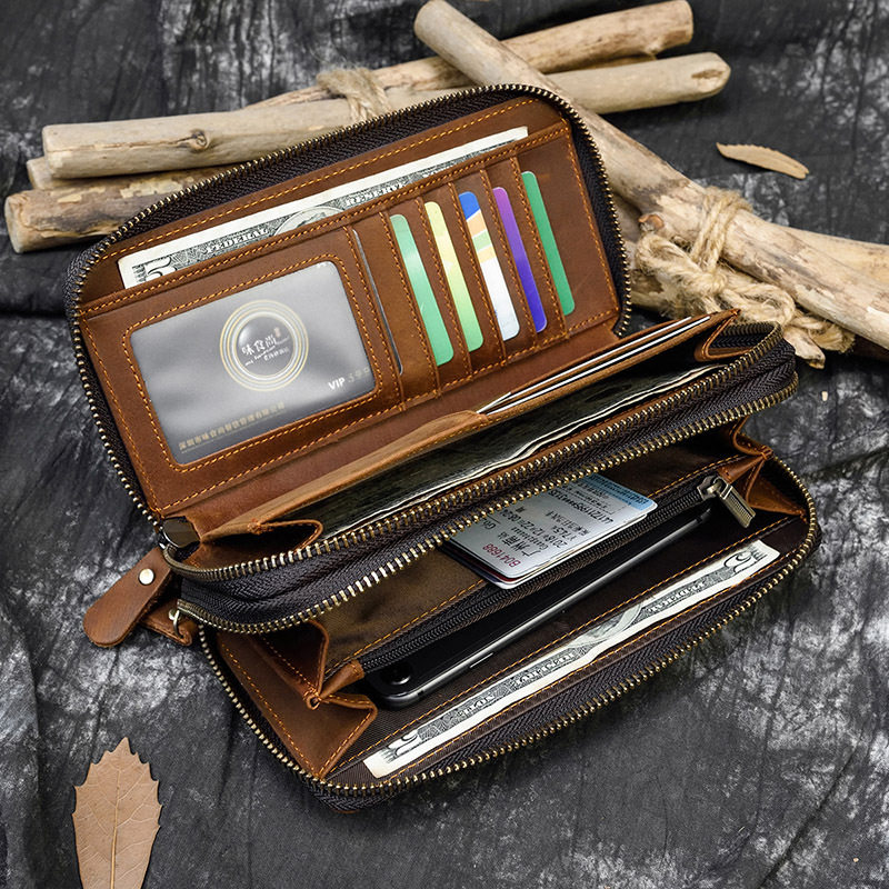 男士疯马皮长款钱包真皮双拉链钱包双层钱包男式疯马皮手拿包1009
