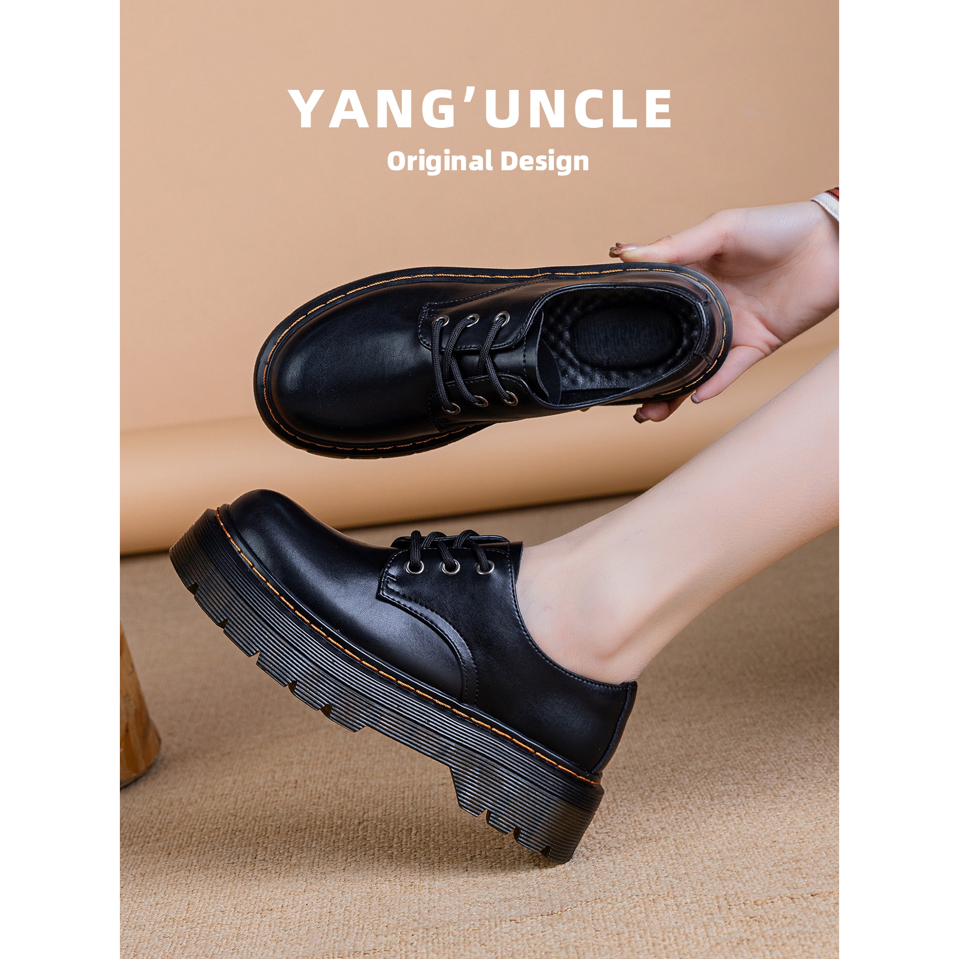 小皮鞋女春秋新款厚底乐福鞋真皮女鞋子爆款浅口单鞋黑色马丁鞋女