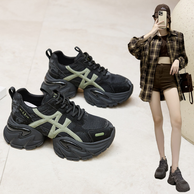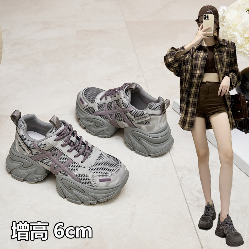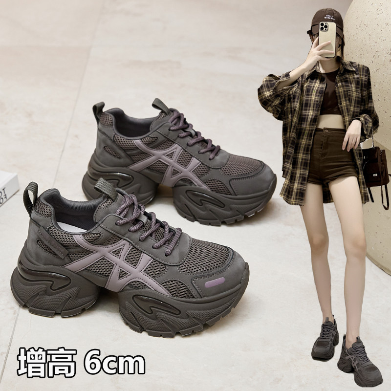 2025秋厚底轻便显脚小老爹鞋女小个子增高6厘米真皮女鞋小码3233