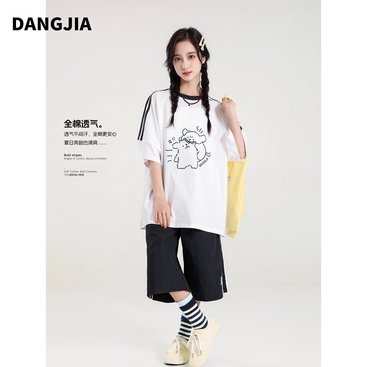 女童卡通印花短袖T恤纯棉中大童初中生女孩半袖上衣青少年夏装潮