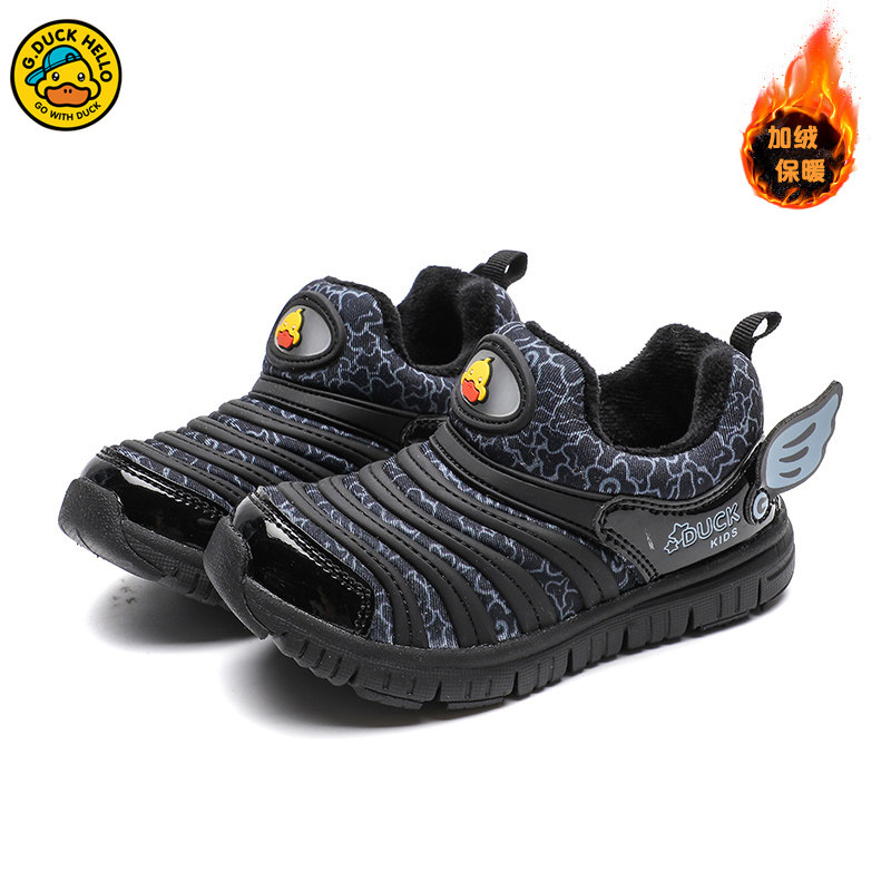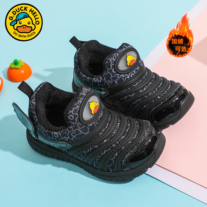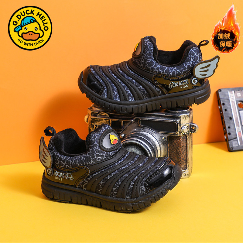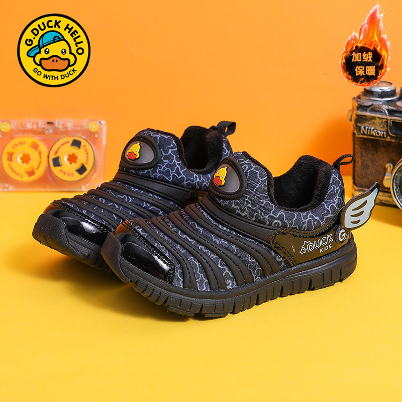 断码清仓小黄鸭男童冬季加绒二棉鞋休闲鞋儿童毛毛虫童鞋一脚蹬鞋