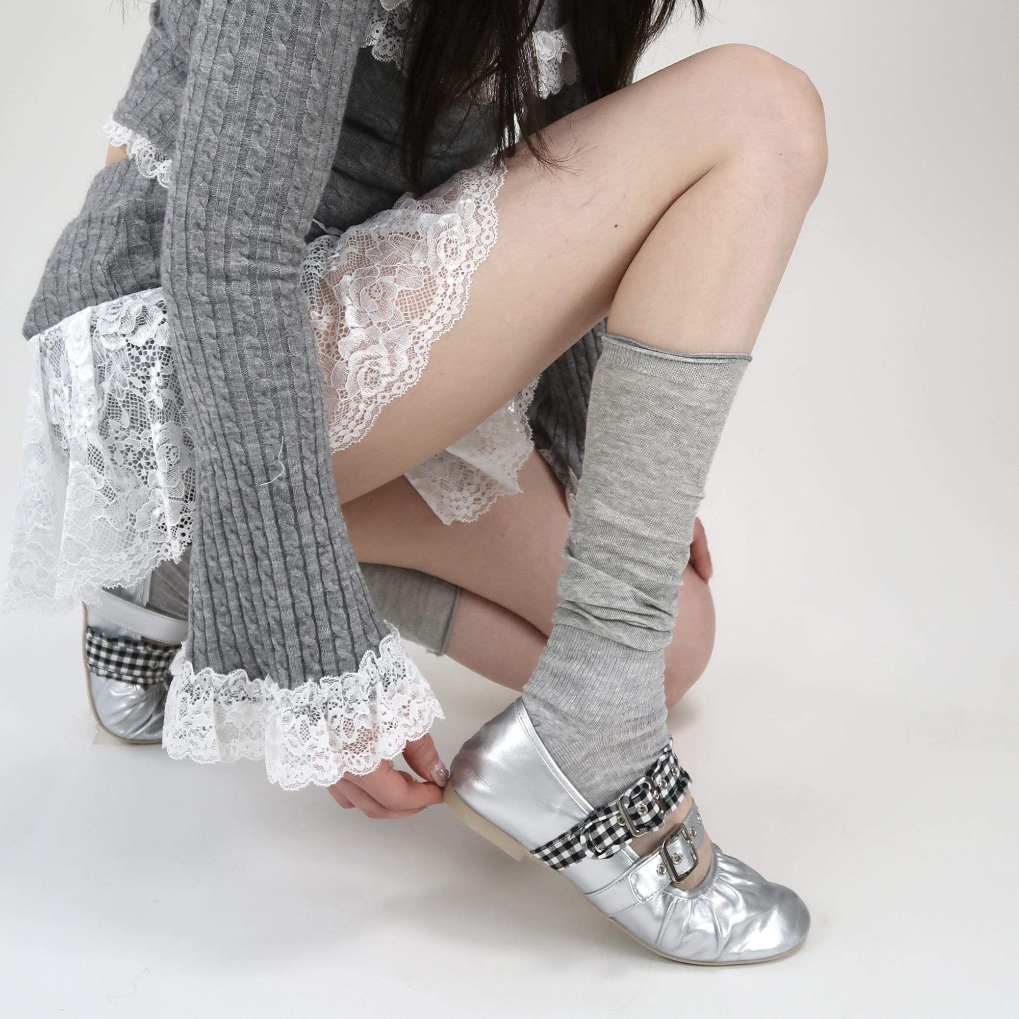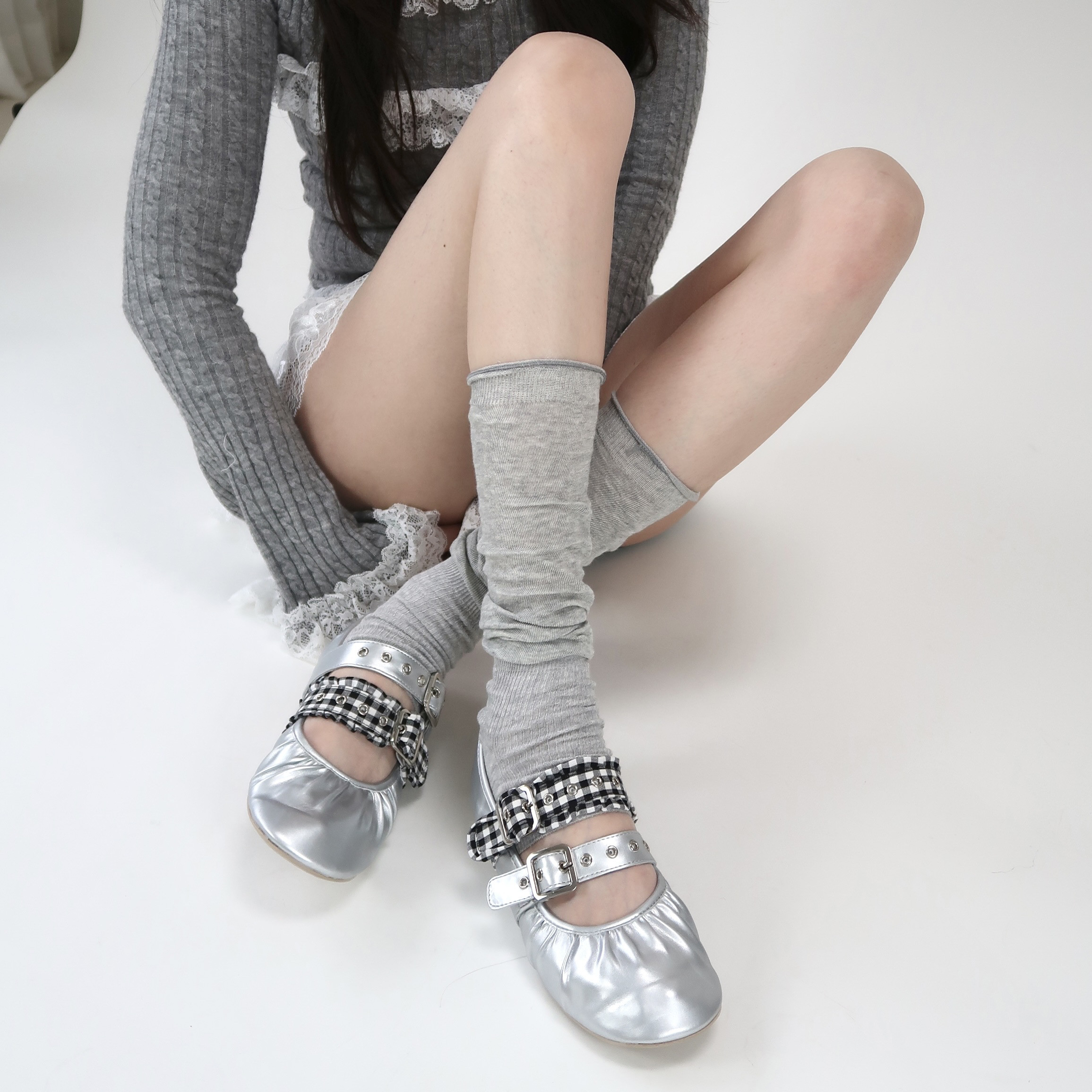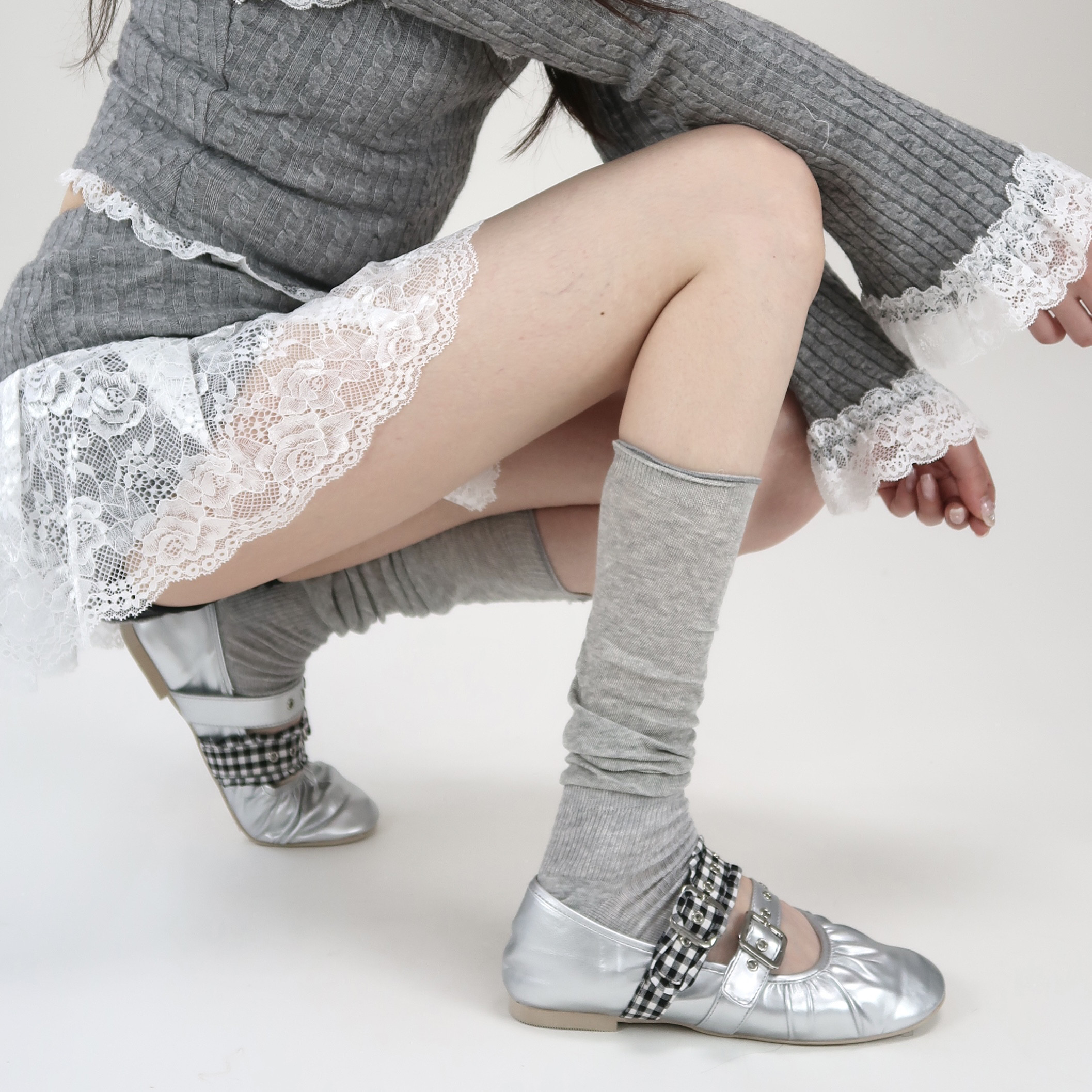 陆甜茶早春封神薄透堆堆中筒袜套白袜美到犯规miu系袜子配小皮鞋