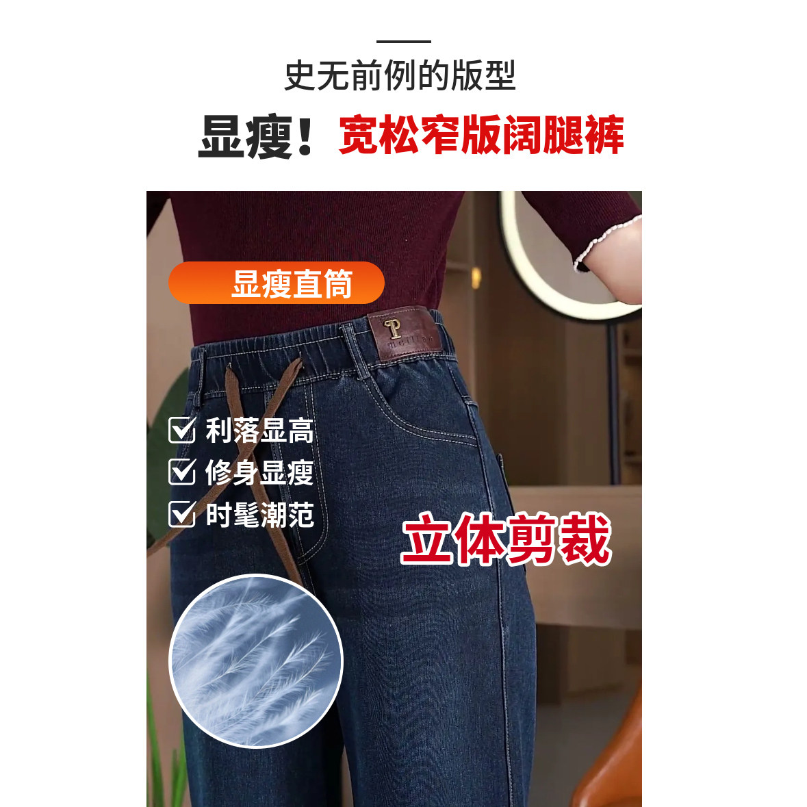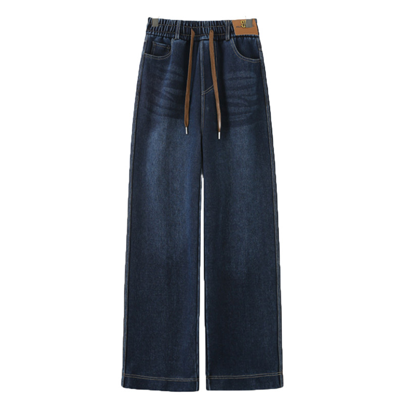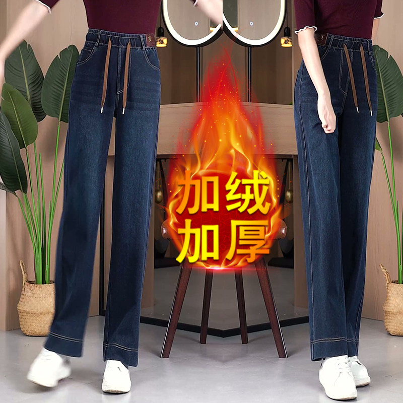 2026春秋季窄版新款高腰显瘦直筒牛仔裤女宽松阔腿加绒妈妈长裤子