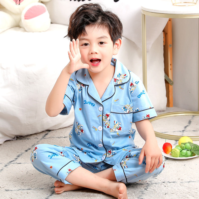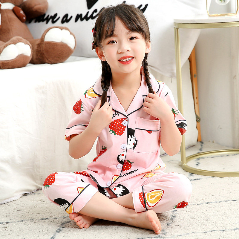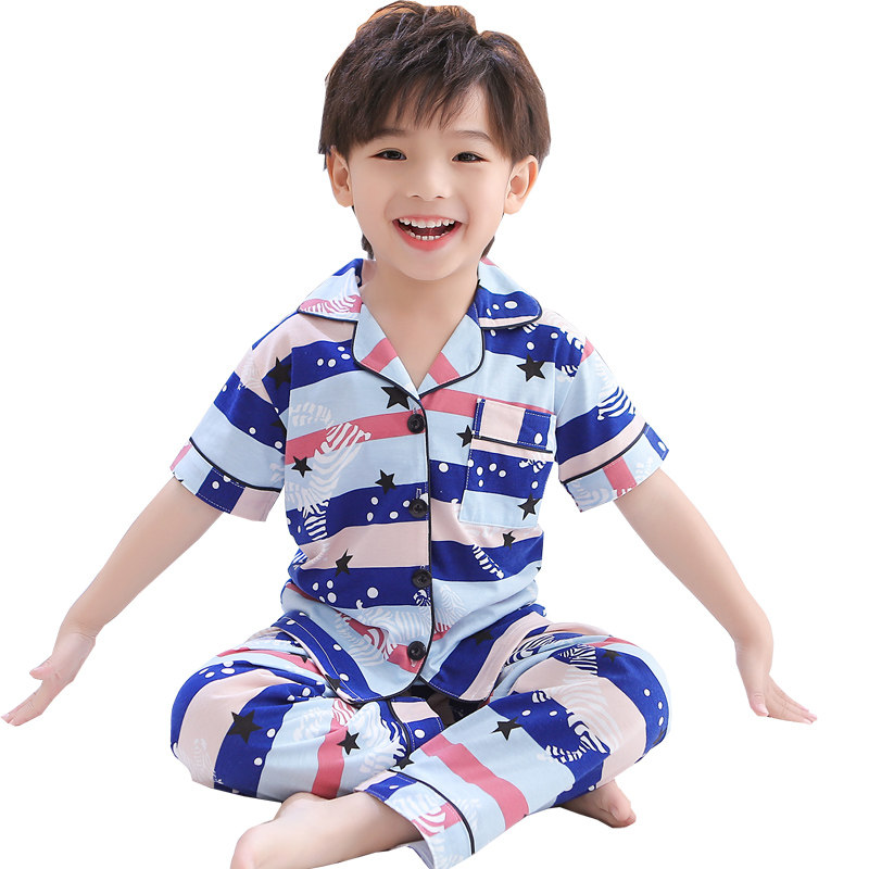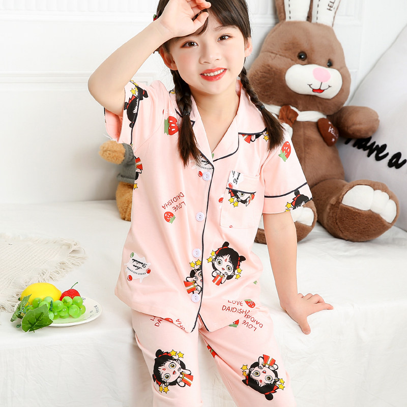 儿童睡衣男童春秋季纯棉女孩宝宝小孩短袖长裤薄款家居服夏季套装