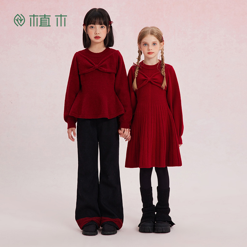 311线报网描述:女童黑牛仔毛线织带蝴蝶结复合奥利绒微喇裤