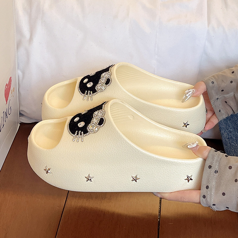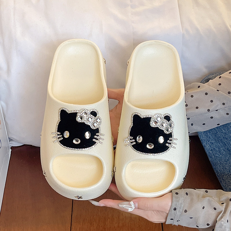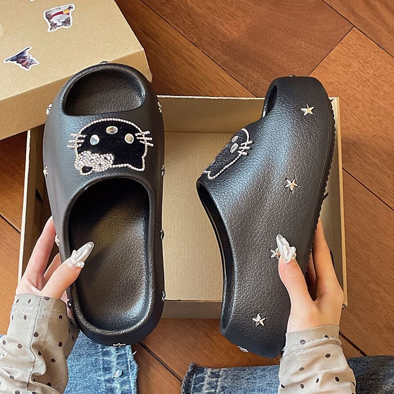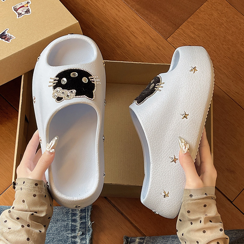猫咪凉拖鞋女外穿夏季厚底海边配裙子eva拖鞋增高黑色防滑沙滩鞋