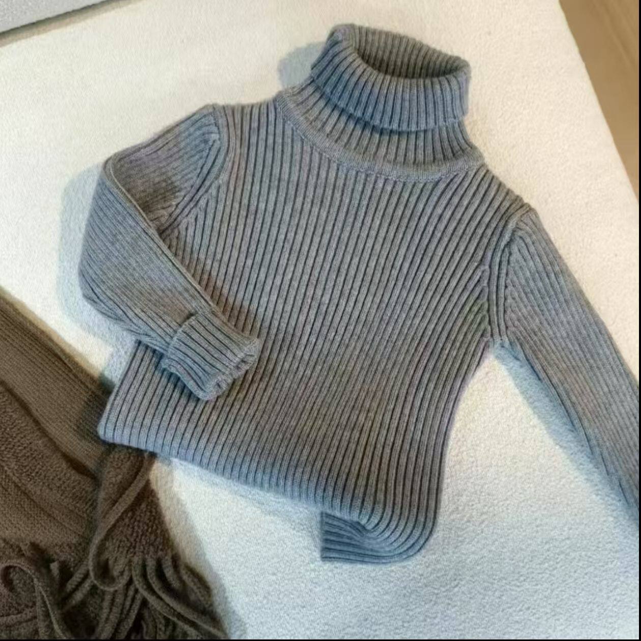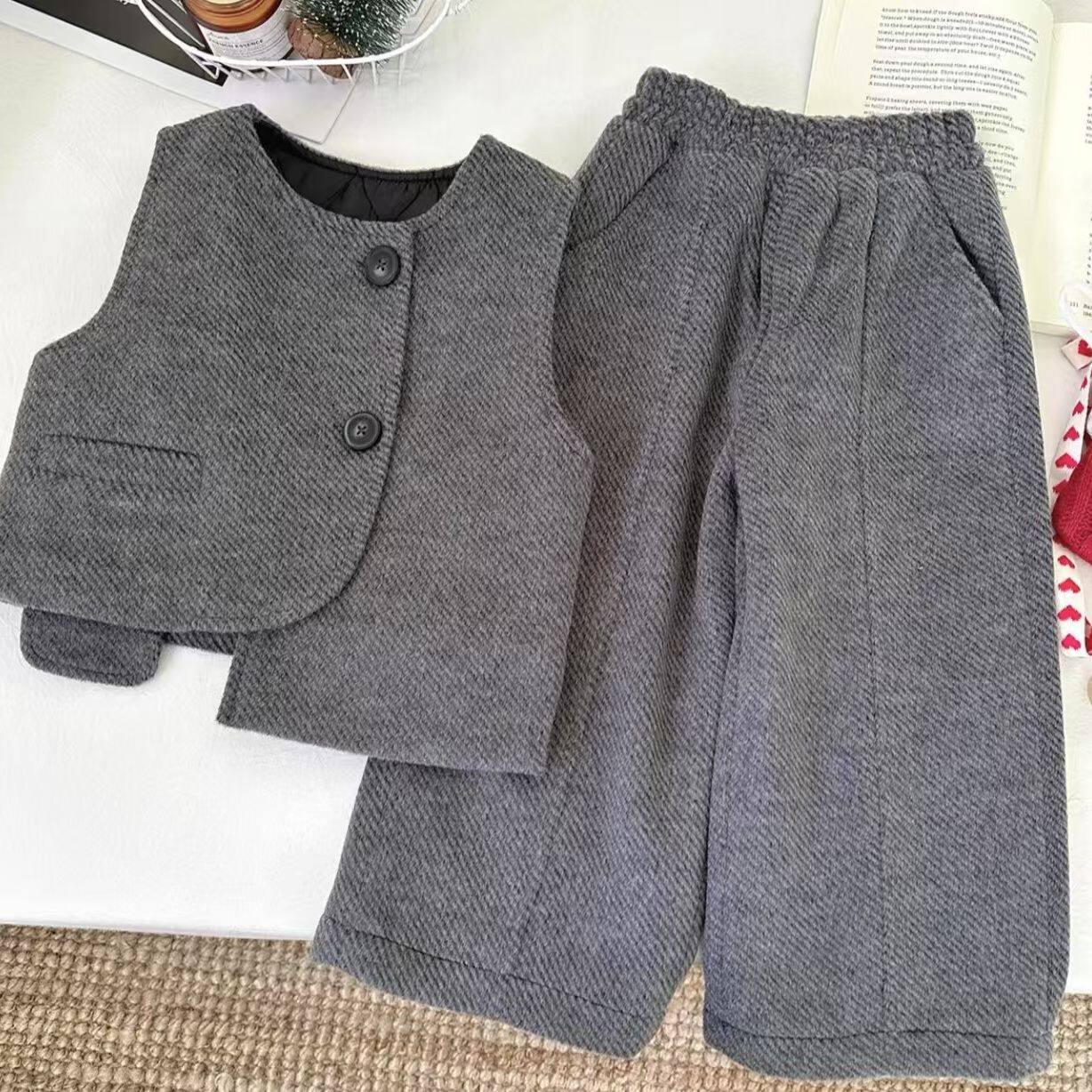 儿童秋冬季韩版时髦洋气男女童高领毛衣加绒加厚马甲裤子三件套潮