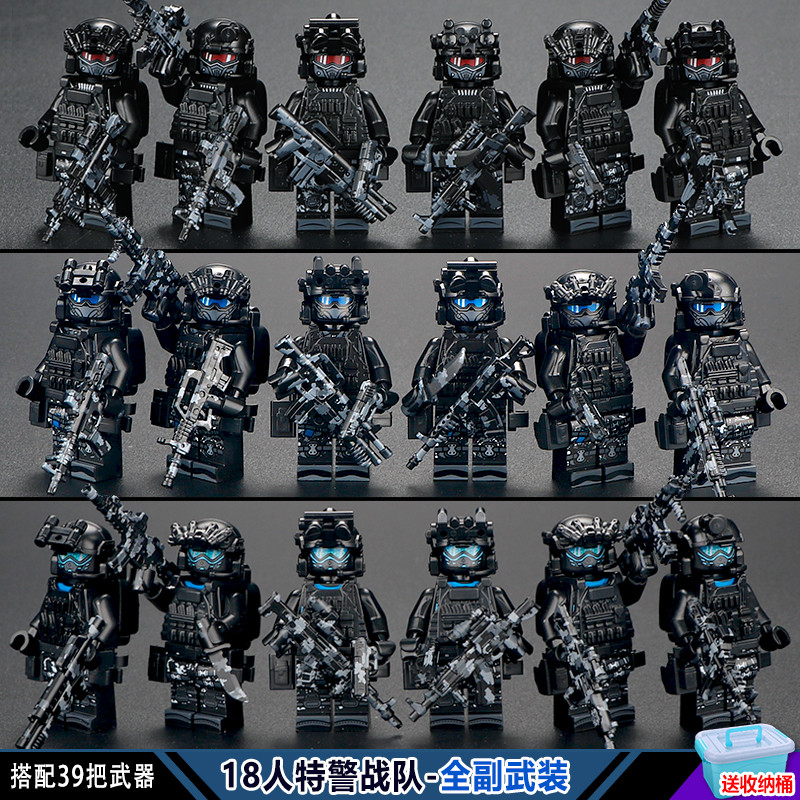 中国积木军事人仔士兵特种兵警察小人偶儿童益智拼装男孩玩具拼图