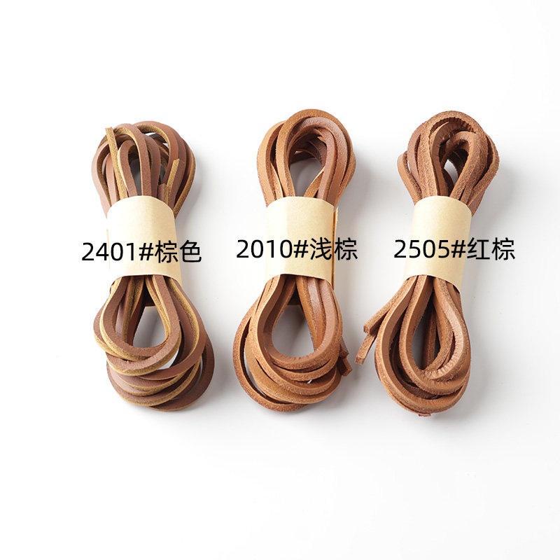HIBERNI品牌方形牛皮鞋带棕色红棕浅棕工装鞋古着复古替换鞋带绳