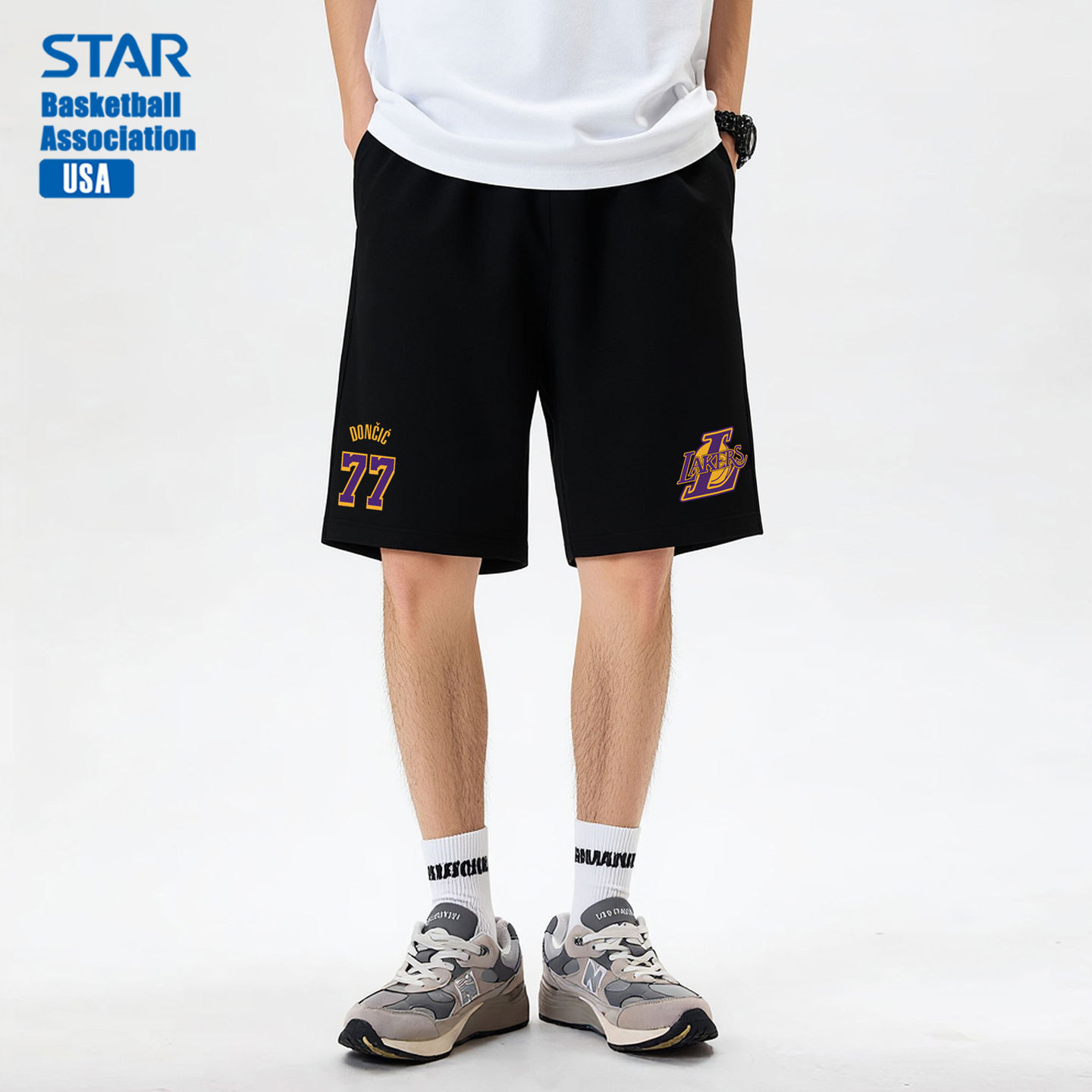 311线报网描述:湖人东契奇美式纯棉篮球运动短裤