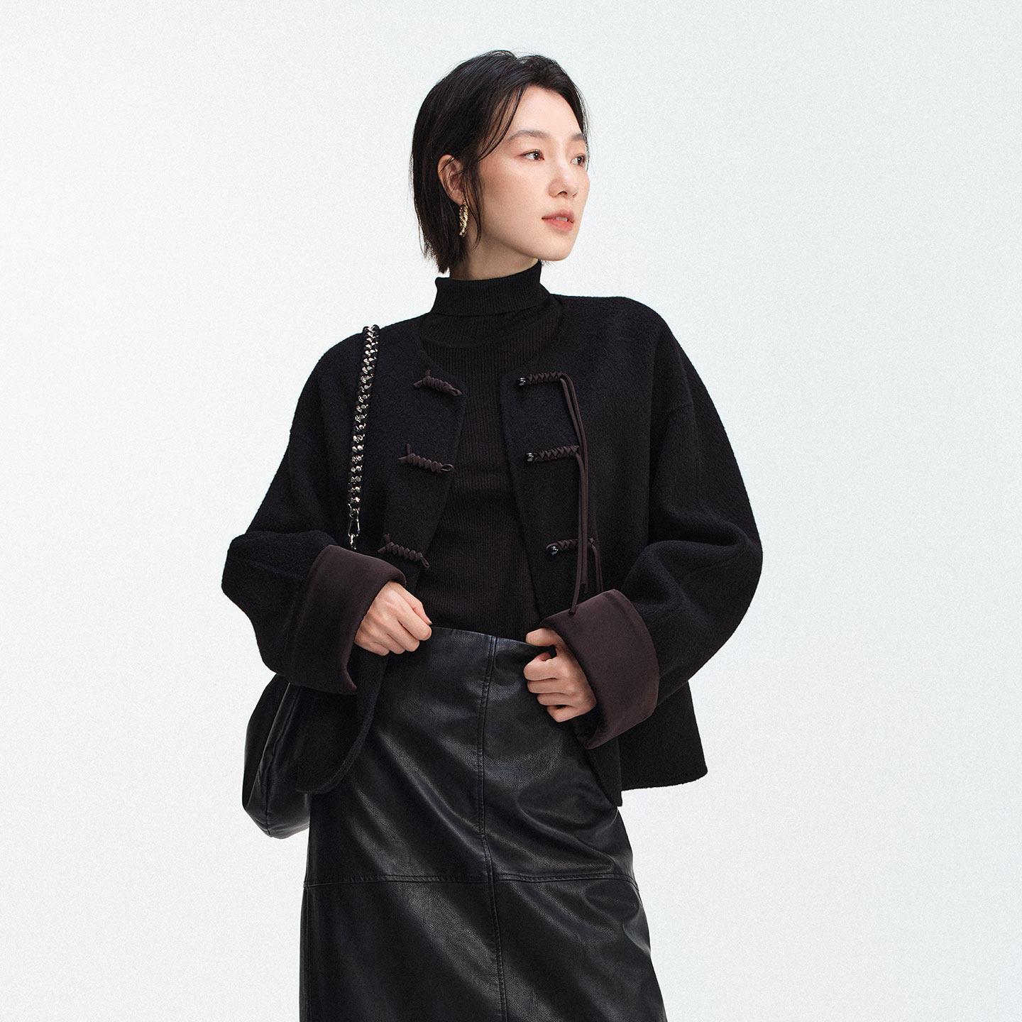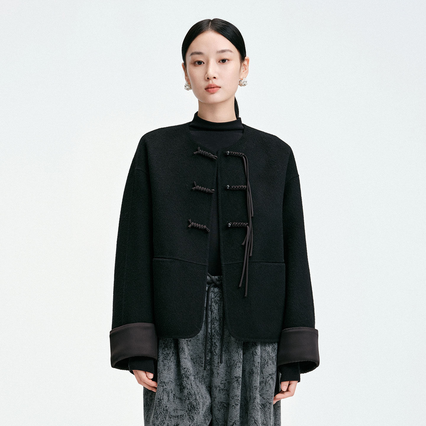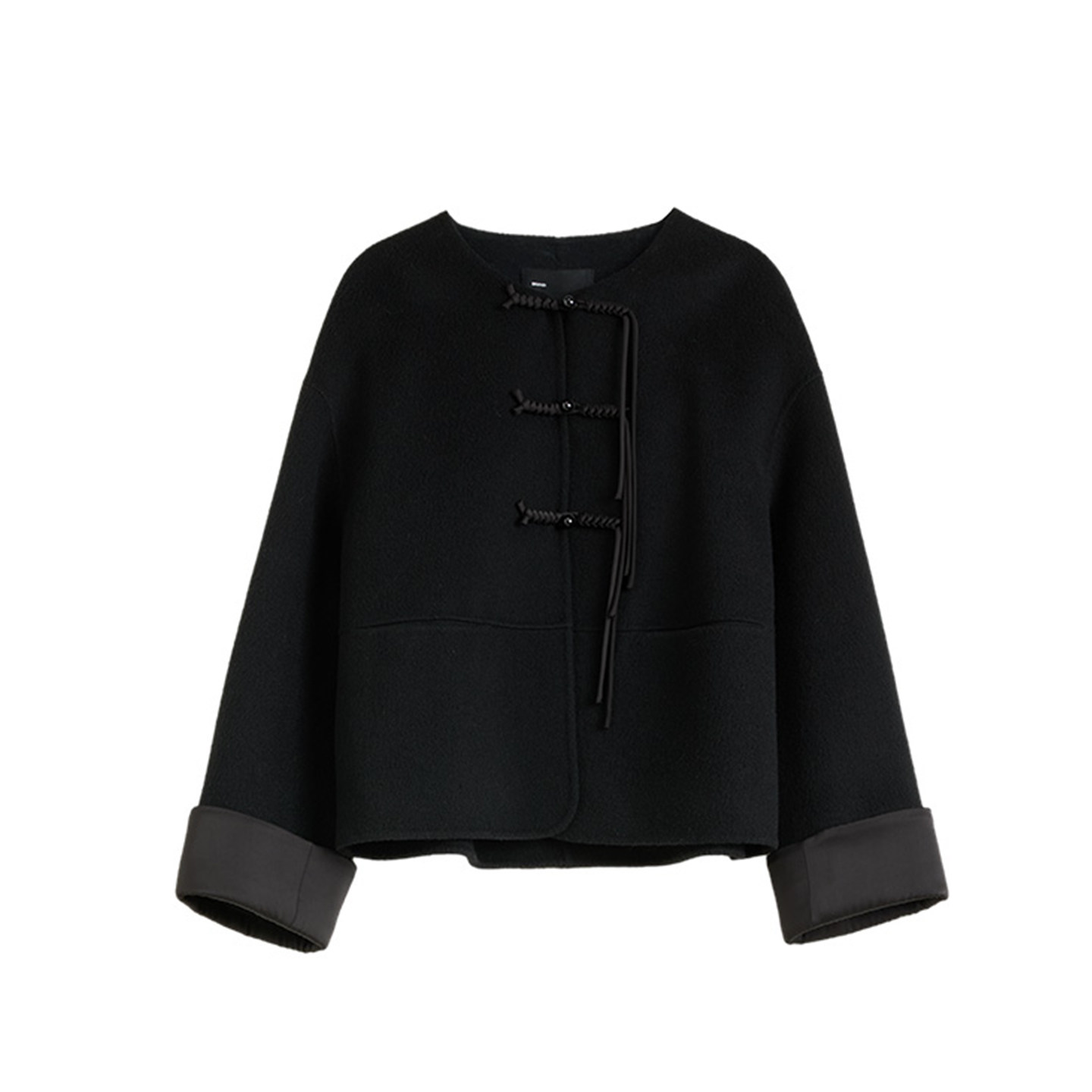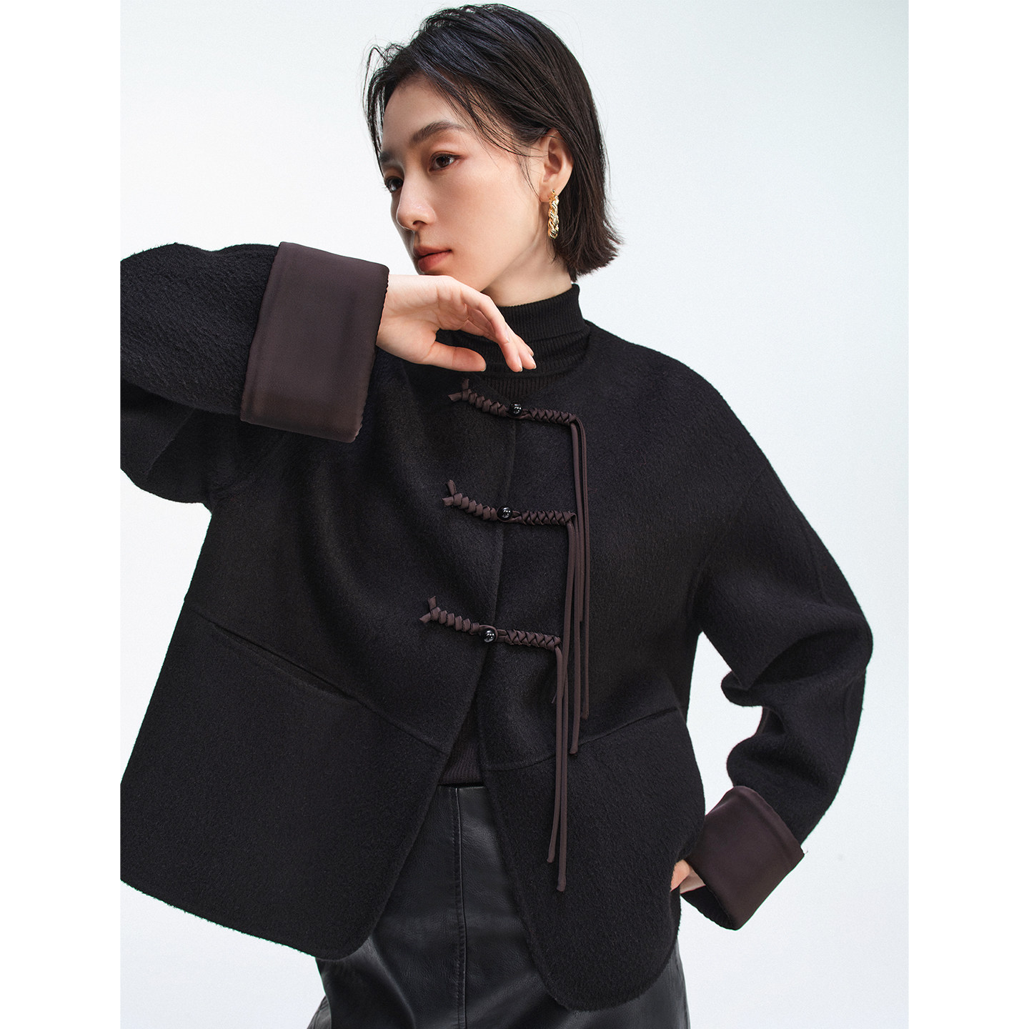 2025冬季新中式盘扣设计感短款双面呢外套女时尚优雅百搭圆领上衣