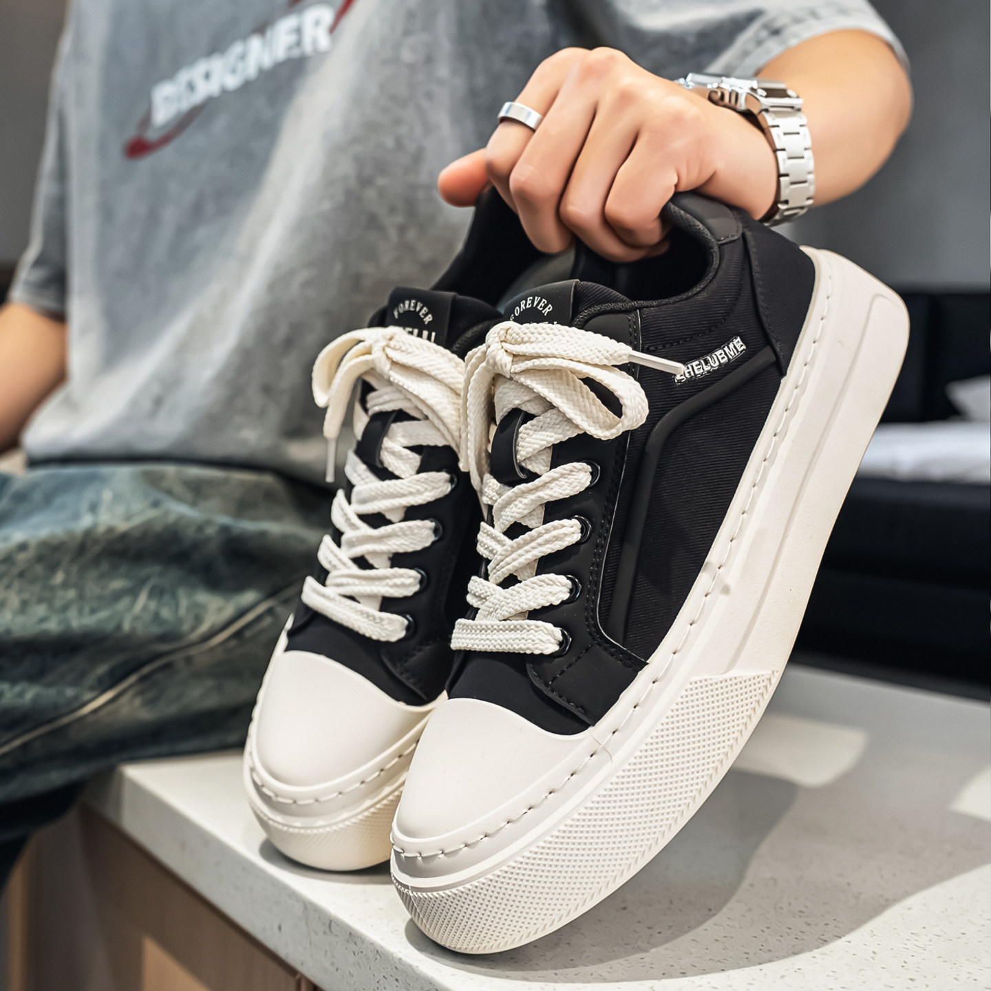 帆布男鞋2026新款夏季透气运动休闲布鞋青少年学生黑色高级感板鞋