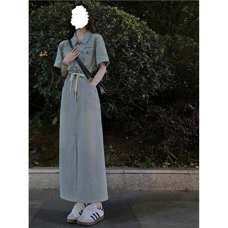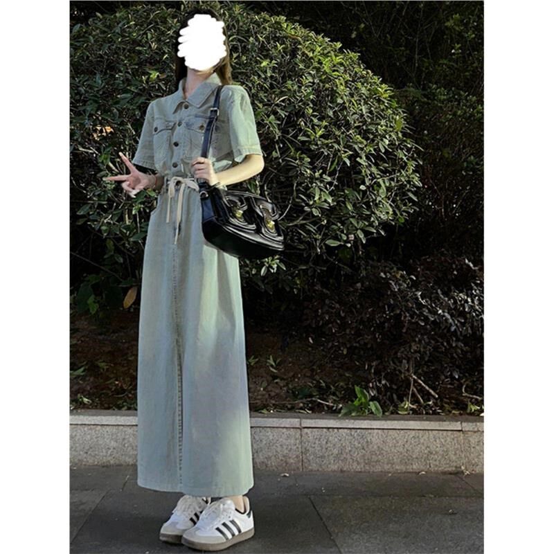 牛仔连衣裙女装夏季港风复古裙子度假风微胖法式长裙小个子高级感