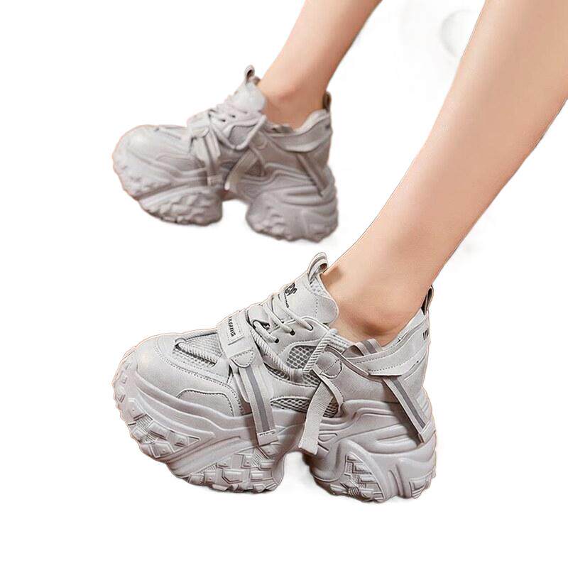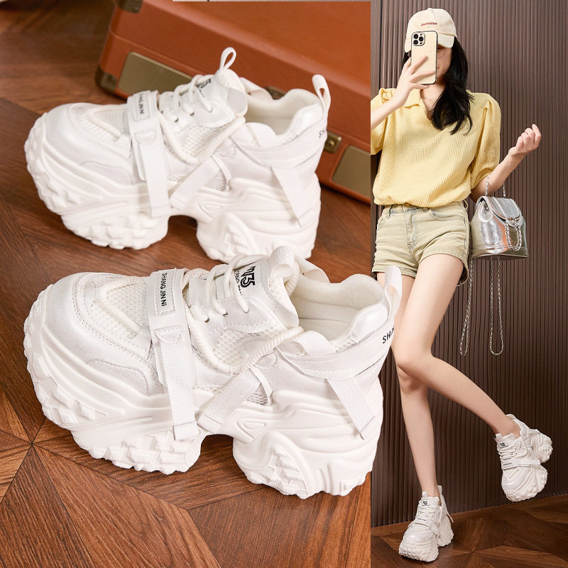 内增高老爹鞋女 秋季新款9cm轻便厚底女鞋透气网面休闲运动鞋
