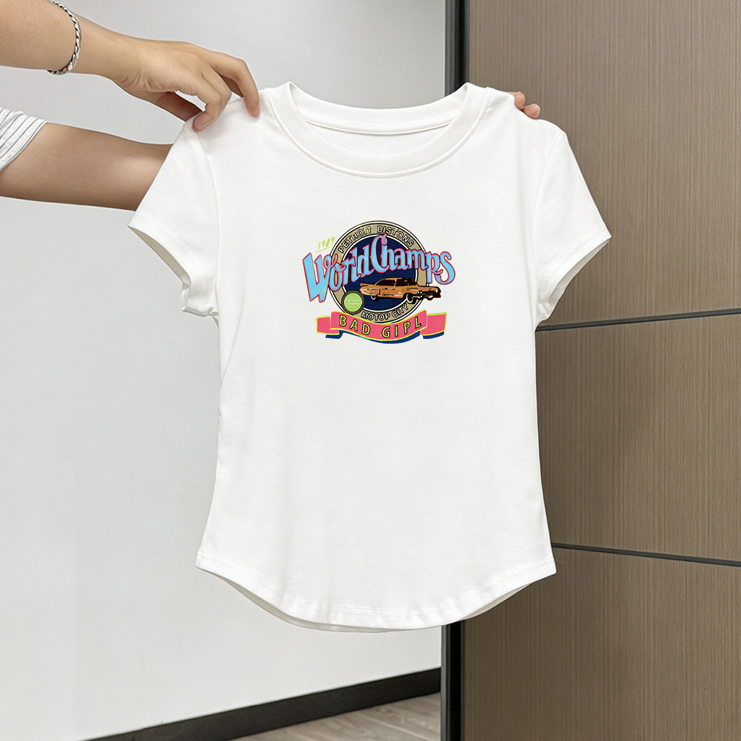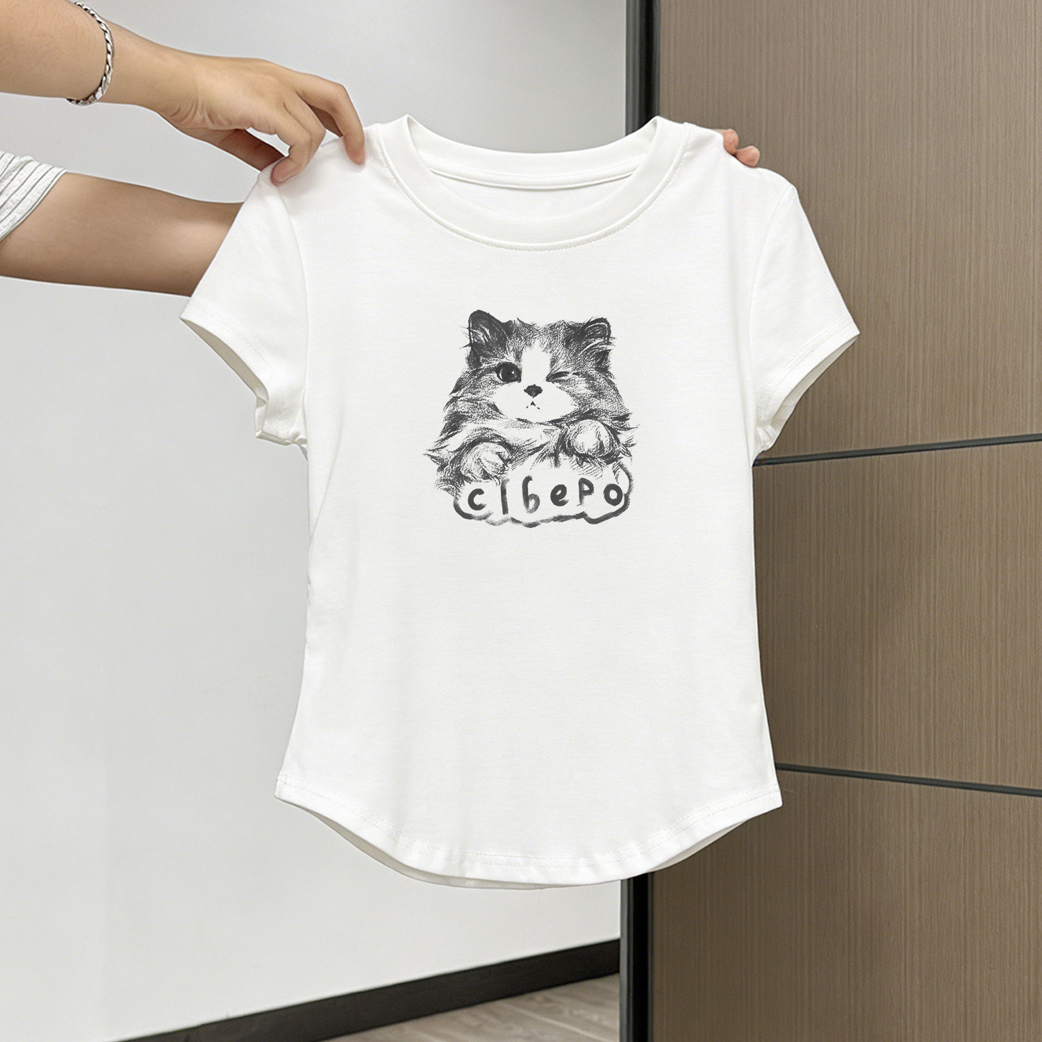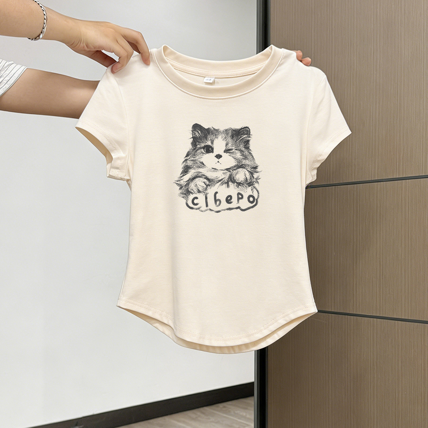 童趣女童夏装2026新款正肩纯棉短袖t恤收腰小衫圆领短款儿童上衣
