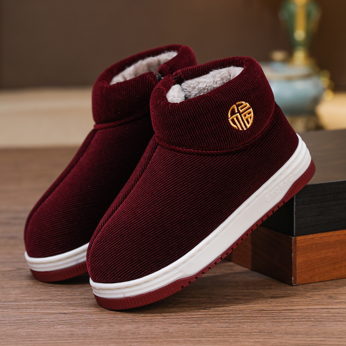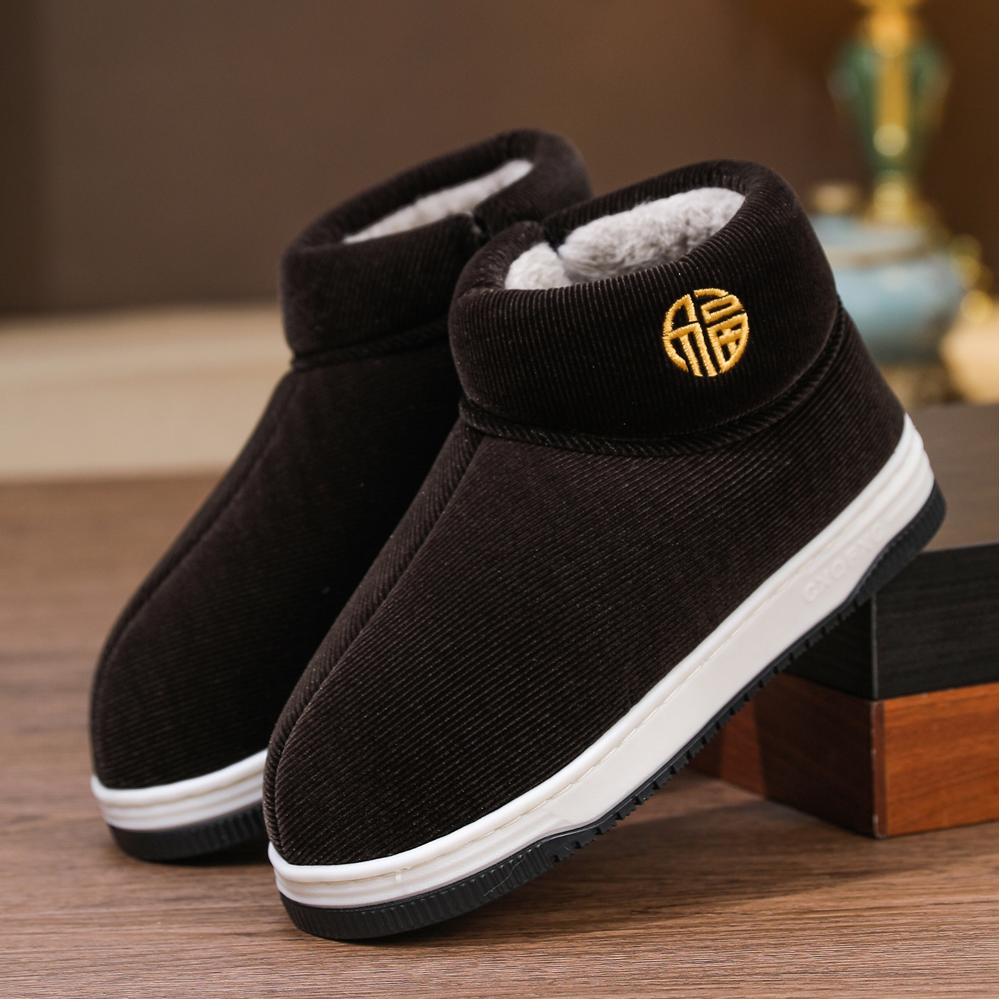 冬季新款男女款加绒加厚高帮包跟棉拖鞋居家外穿厚底防滑老人棉鞋