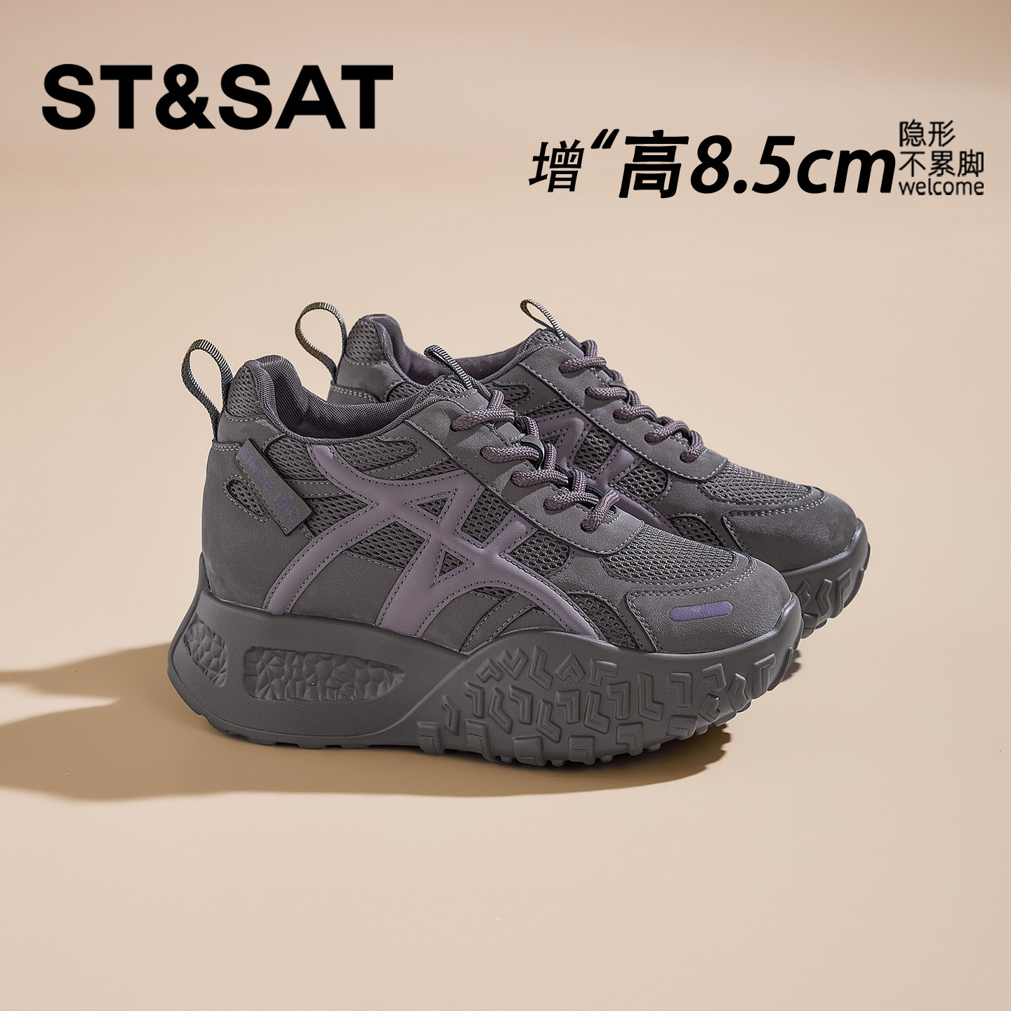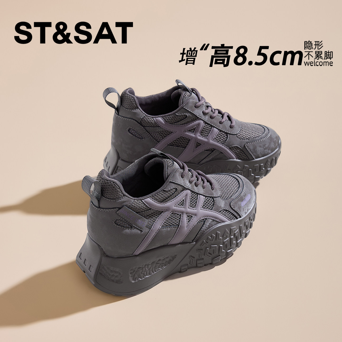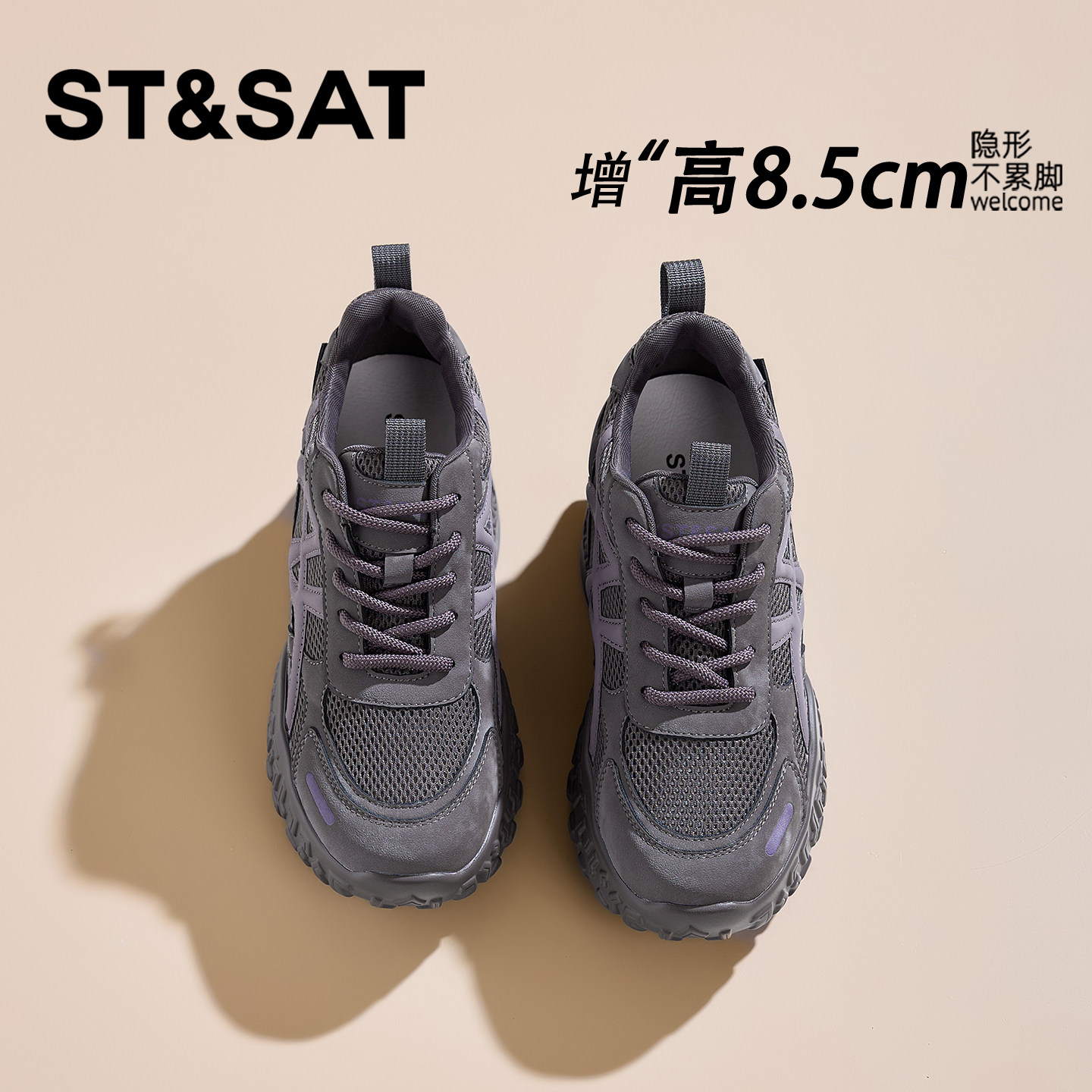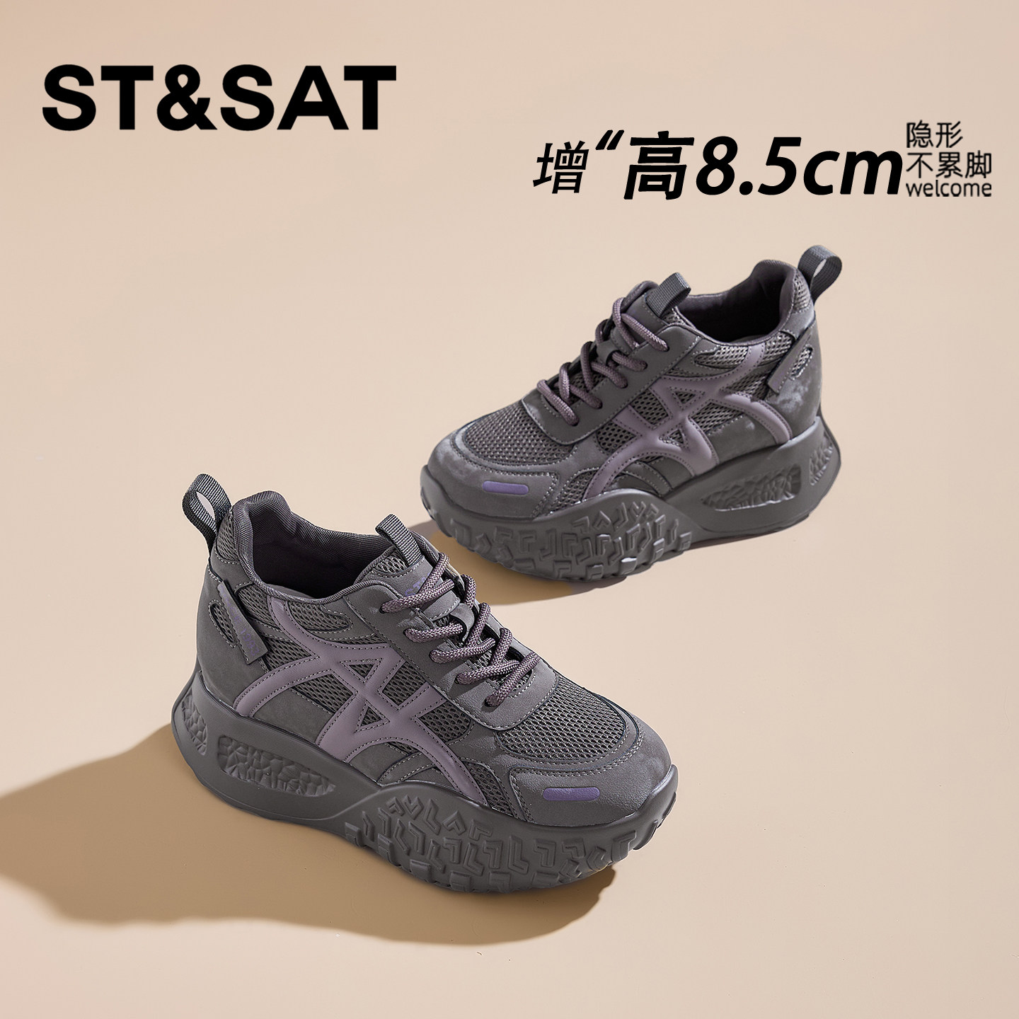 星期六8.5CM隐形内增高女鞋网面透气轻便网鞋厚底小个子老爹鞋