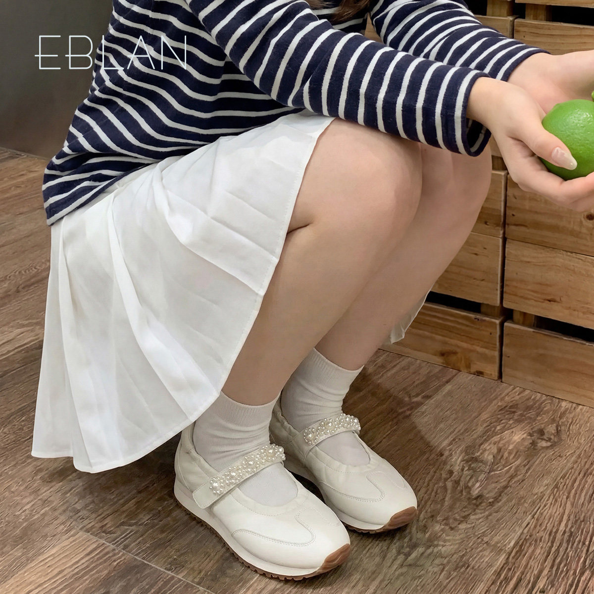EBLAN/伊伴运动风玛丽珍女鞋2026新款春夏魔术贴珍珠厚底芭蕾单鞋