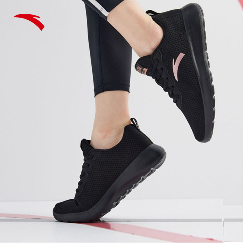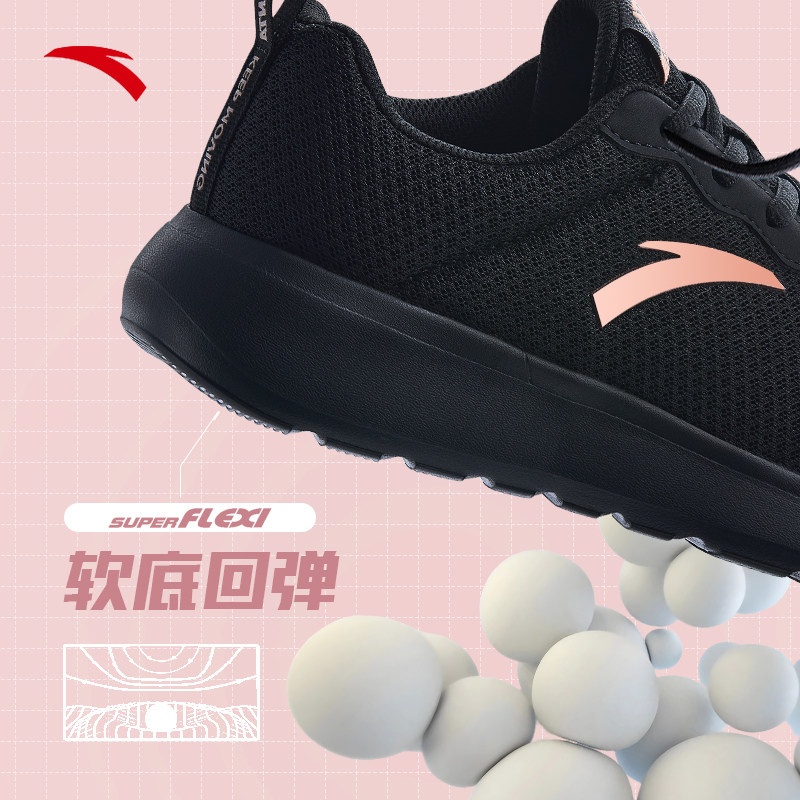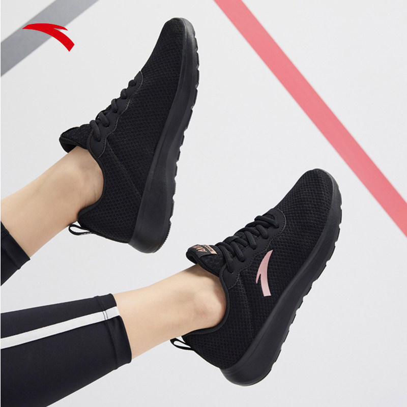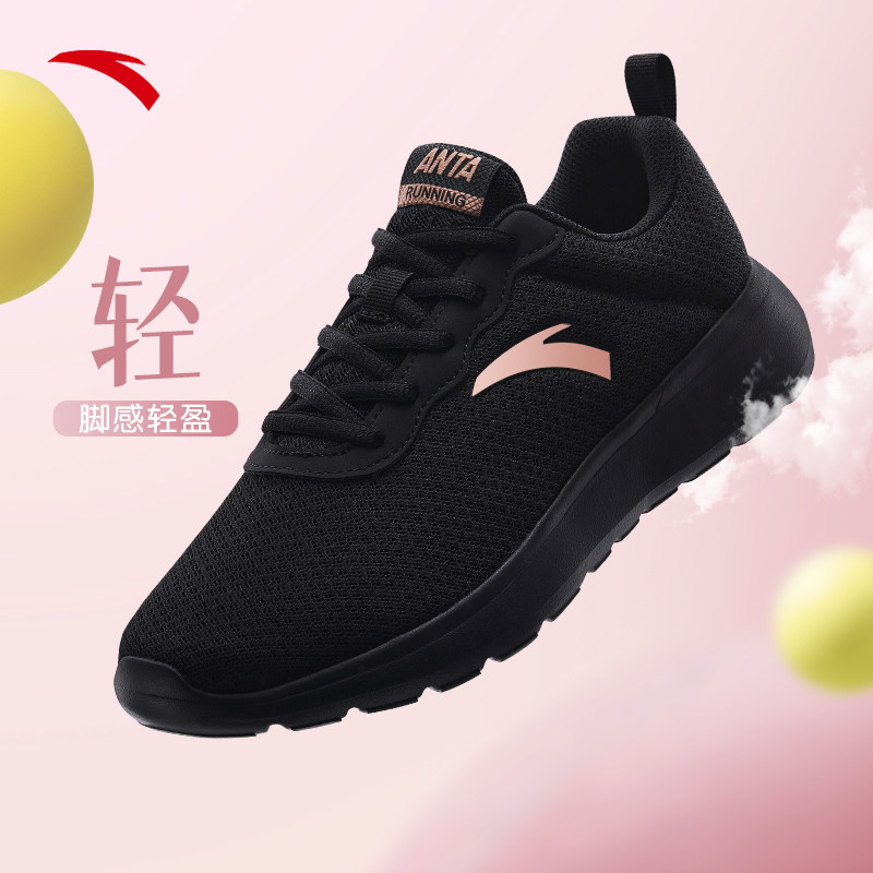 安踏女鞋透气跑步鞋网面2026新款官方旗舰正品轻便软底黑色运动鞋
