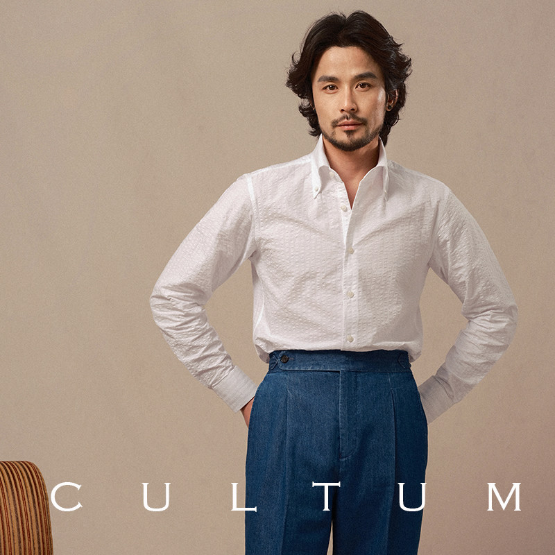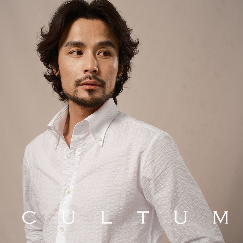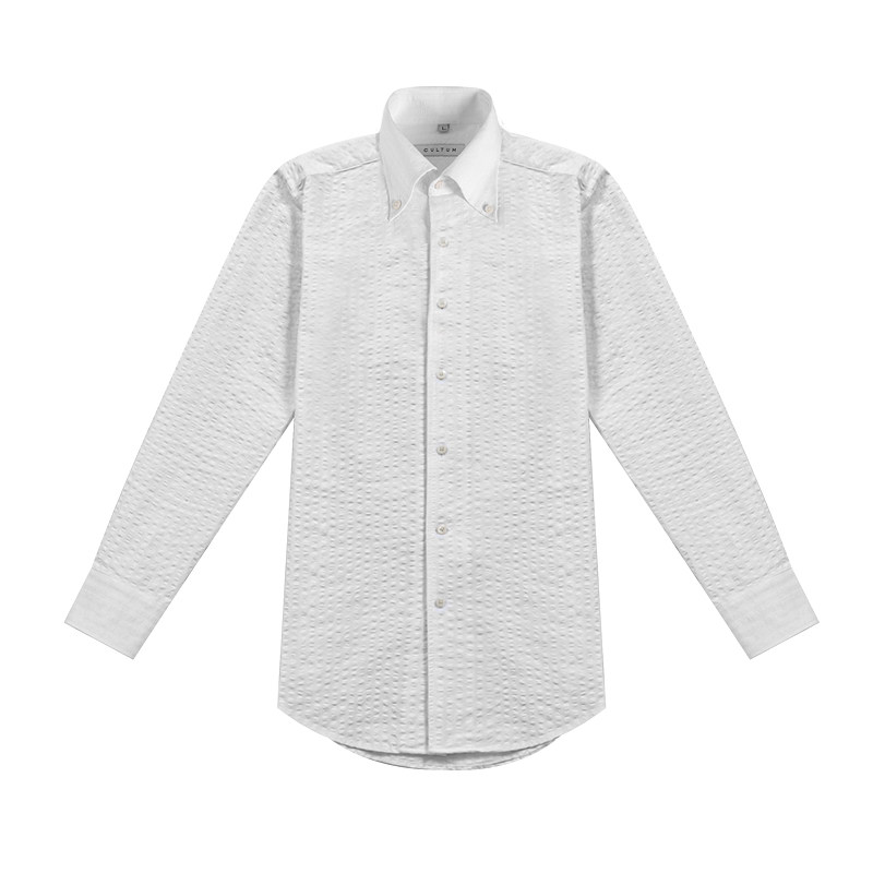 CULTUM春夏轻薄透气泡泡纱纽扣领衬衫男士长袖商务绅士休闲白衬衣